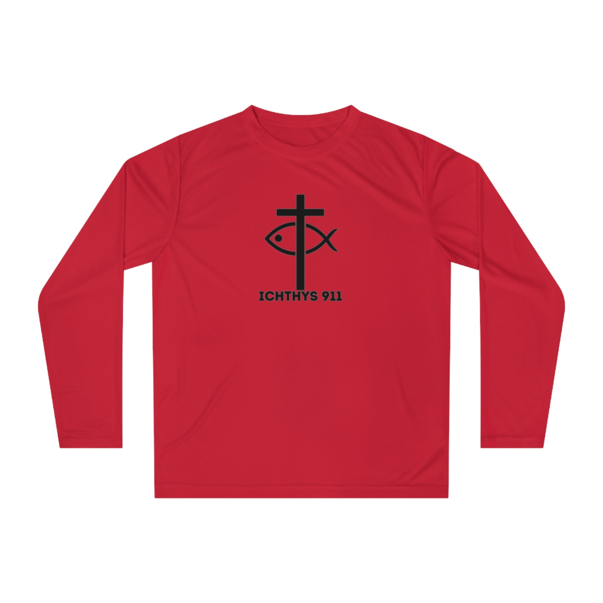 Faith Driven Reverse Unisex Performance Long Sleeve Shirt - ICHTHYS 911 Christian Activewear