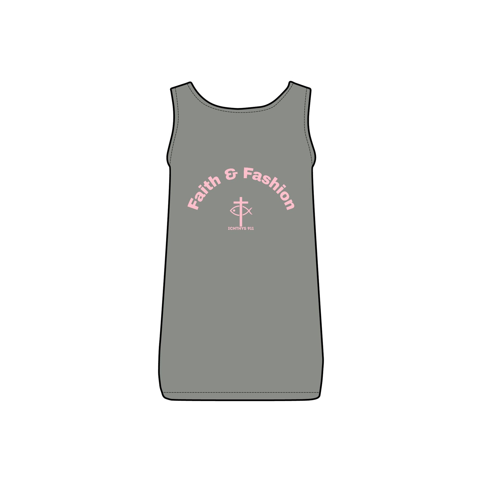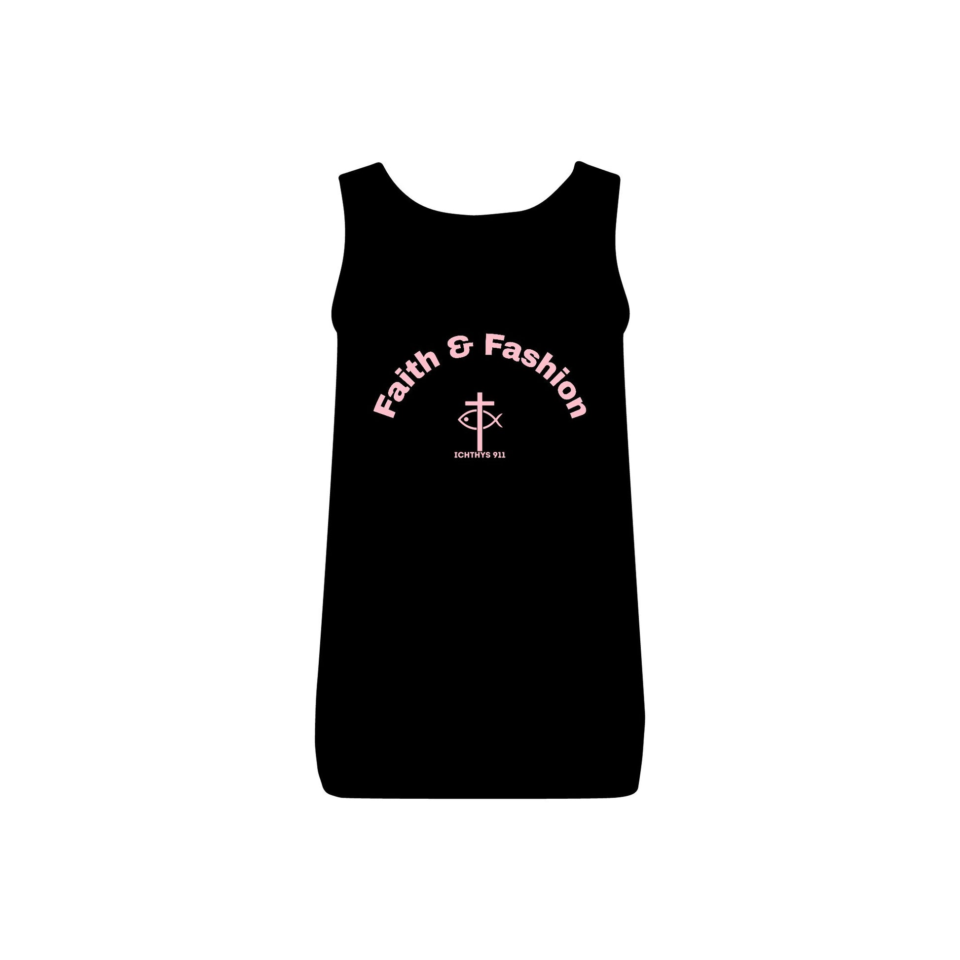 ICHTHYS 911 - Pink Font - "Faith & Fashion" - Comfortable Women's Micro Ribbed Tank with Inspirational Design - Slim fit - Featuring exclusive ICHTHYS 911 Logo