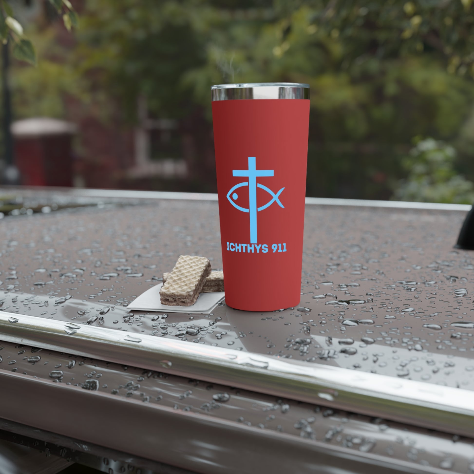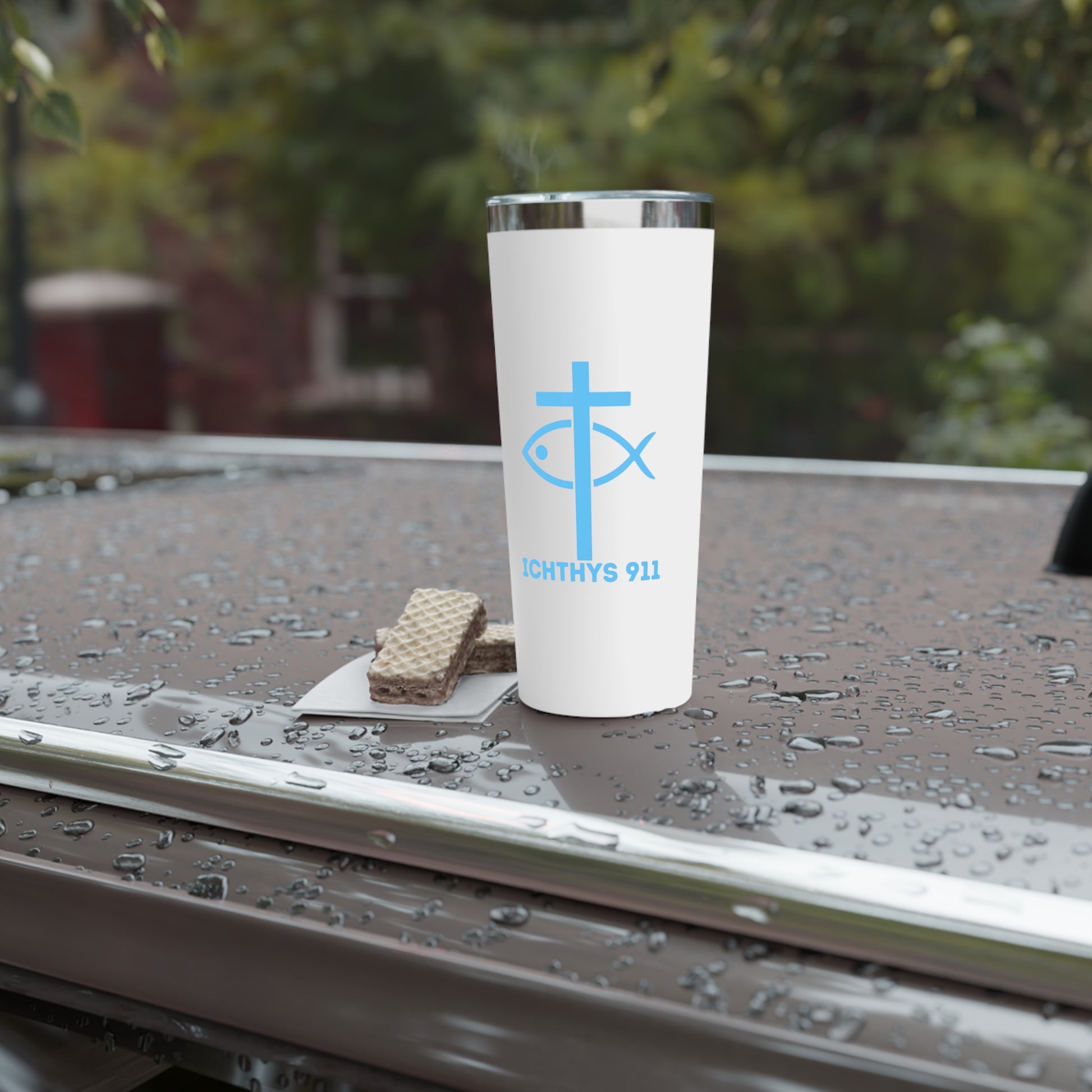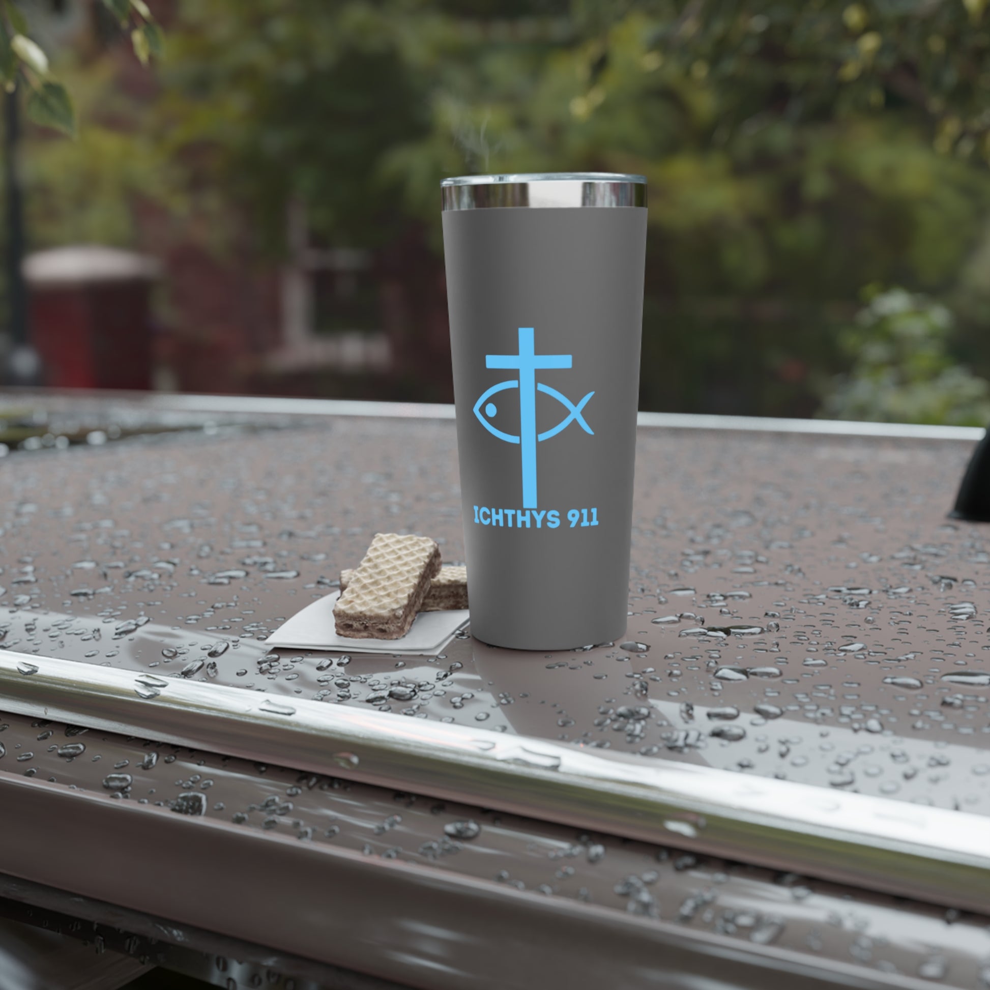Faith-Inspired Copper Vacuum Insulated Tumbler - 22oz with ICHTHYS 911 Design
