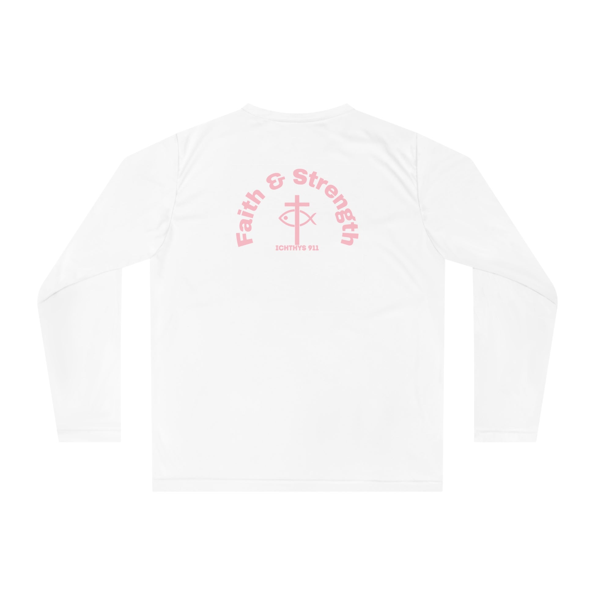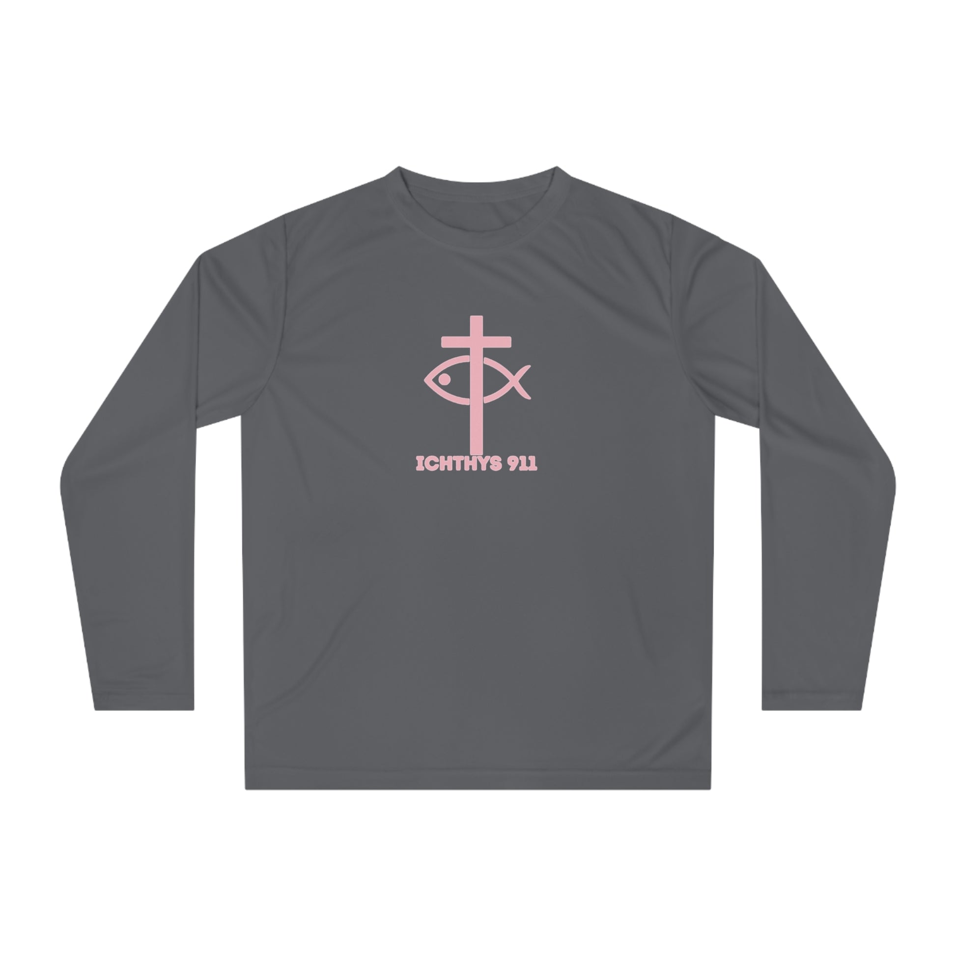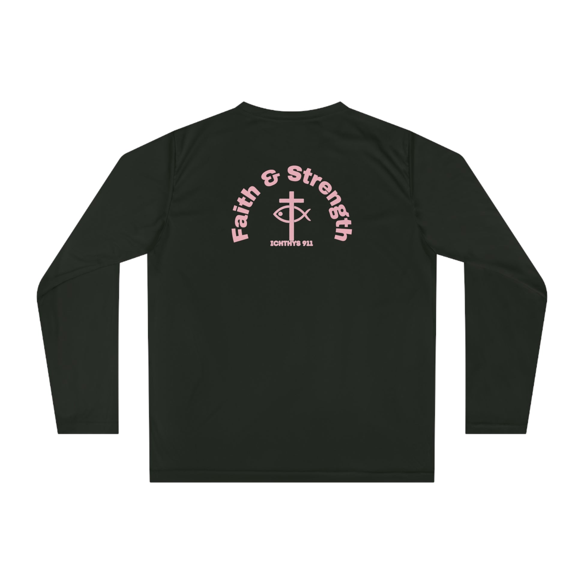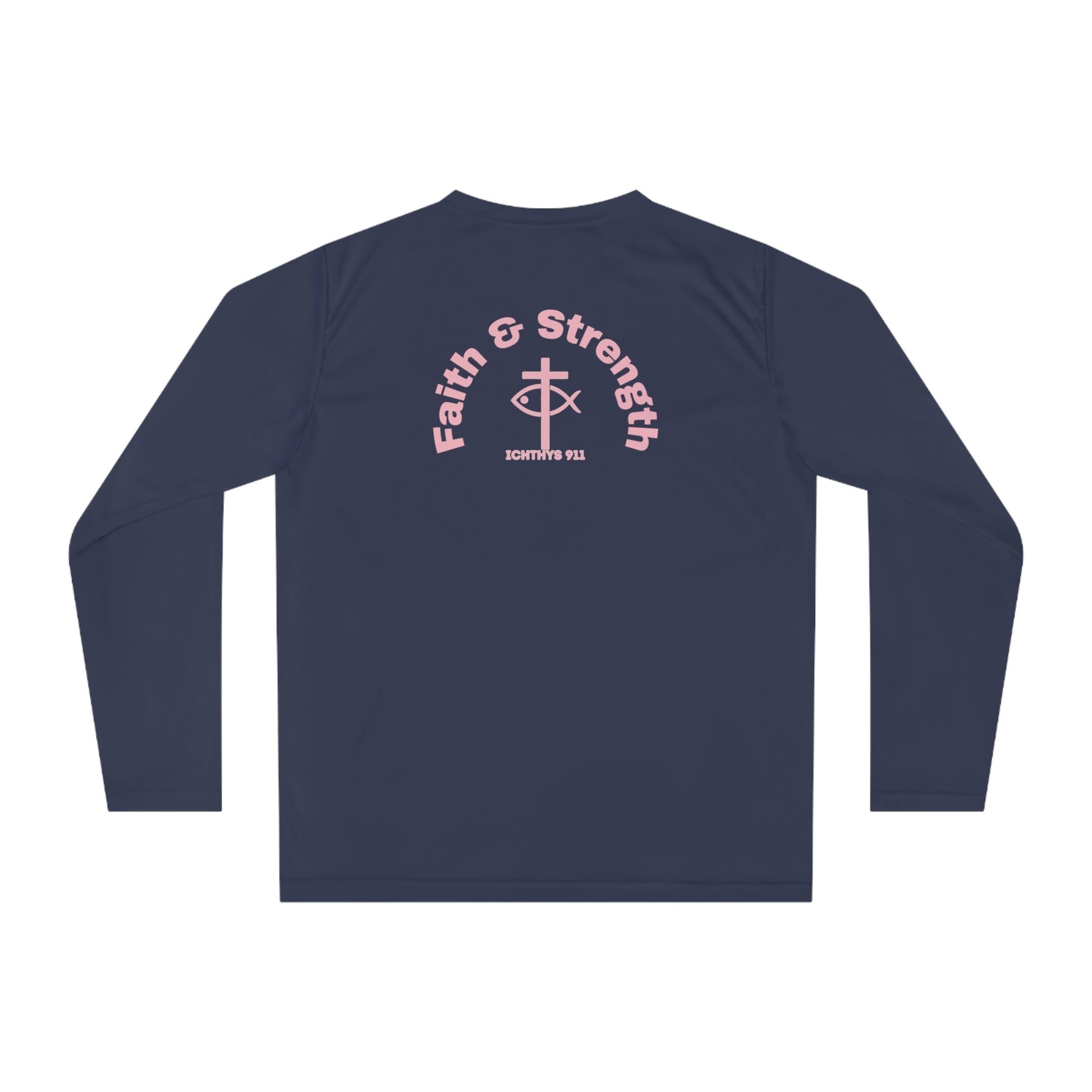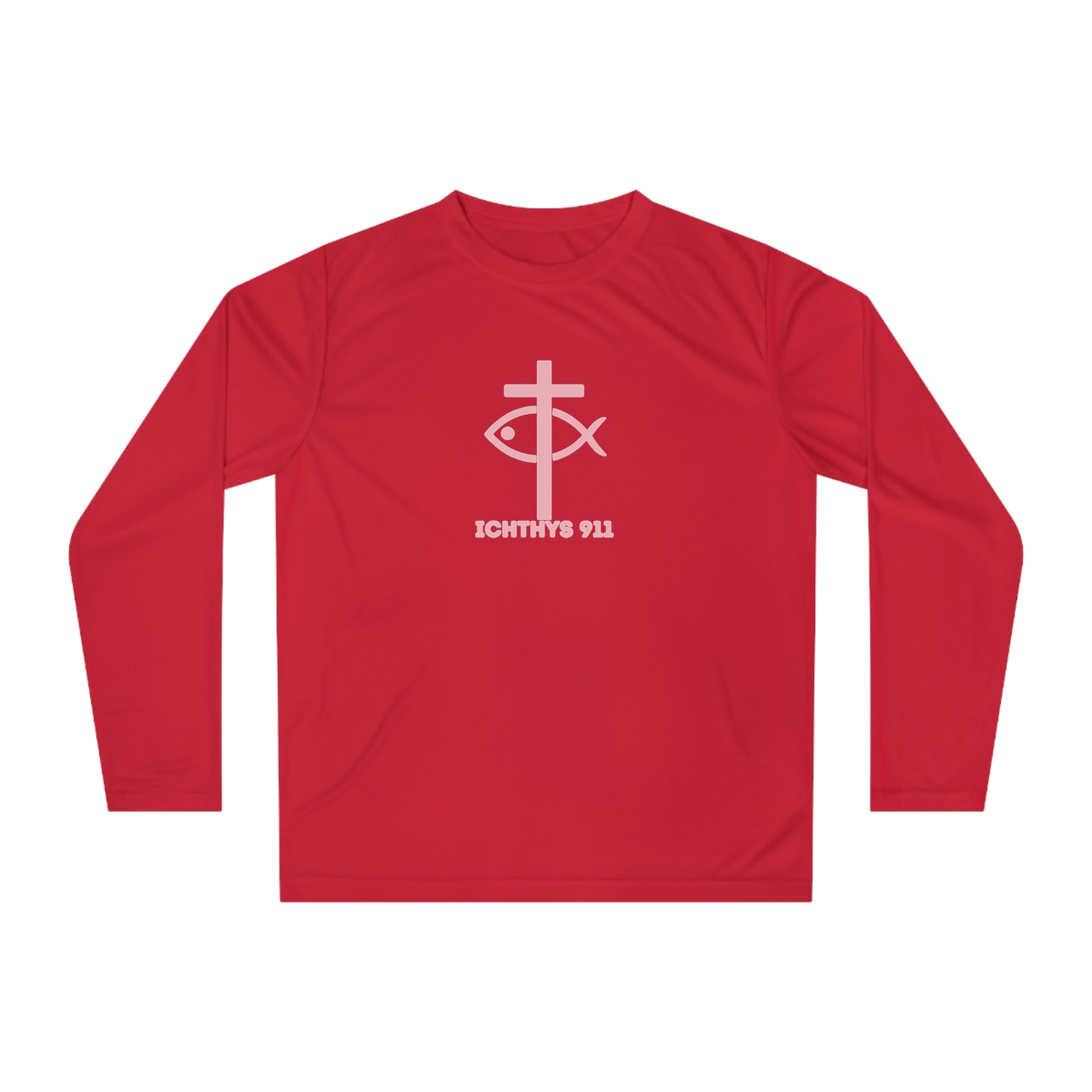 ICHTHYS 911 "Faith & Strength" - Unisex Performance Long Sleeve- Christian Activewear - Men - Women - 100% Moisture-Wicking Poly - UPF30+ Sun Protection