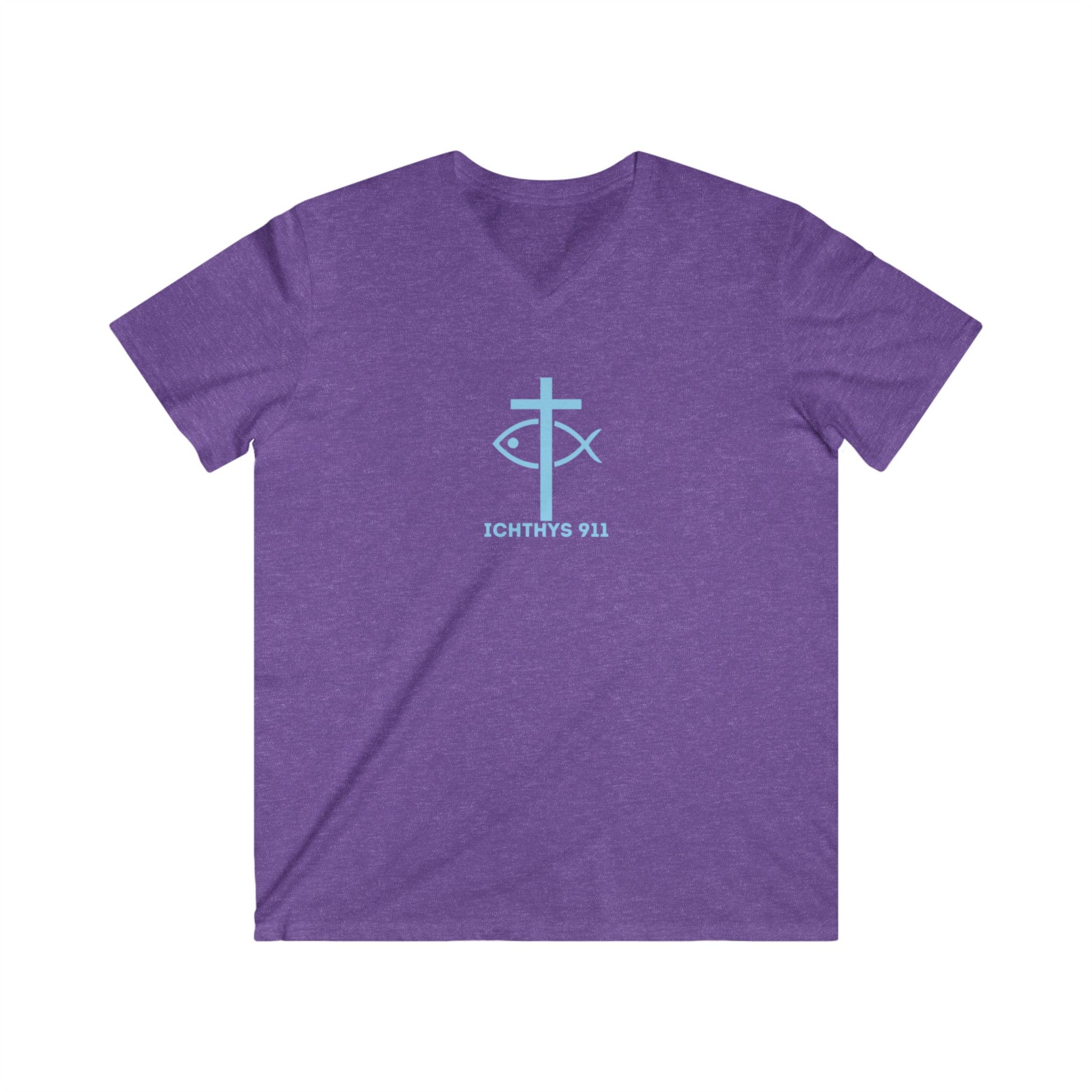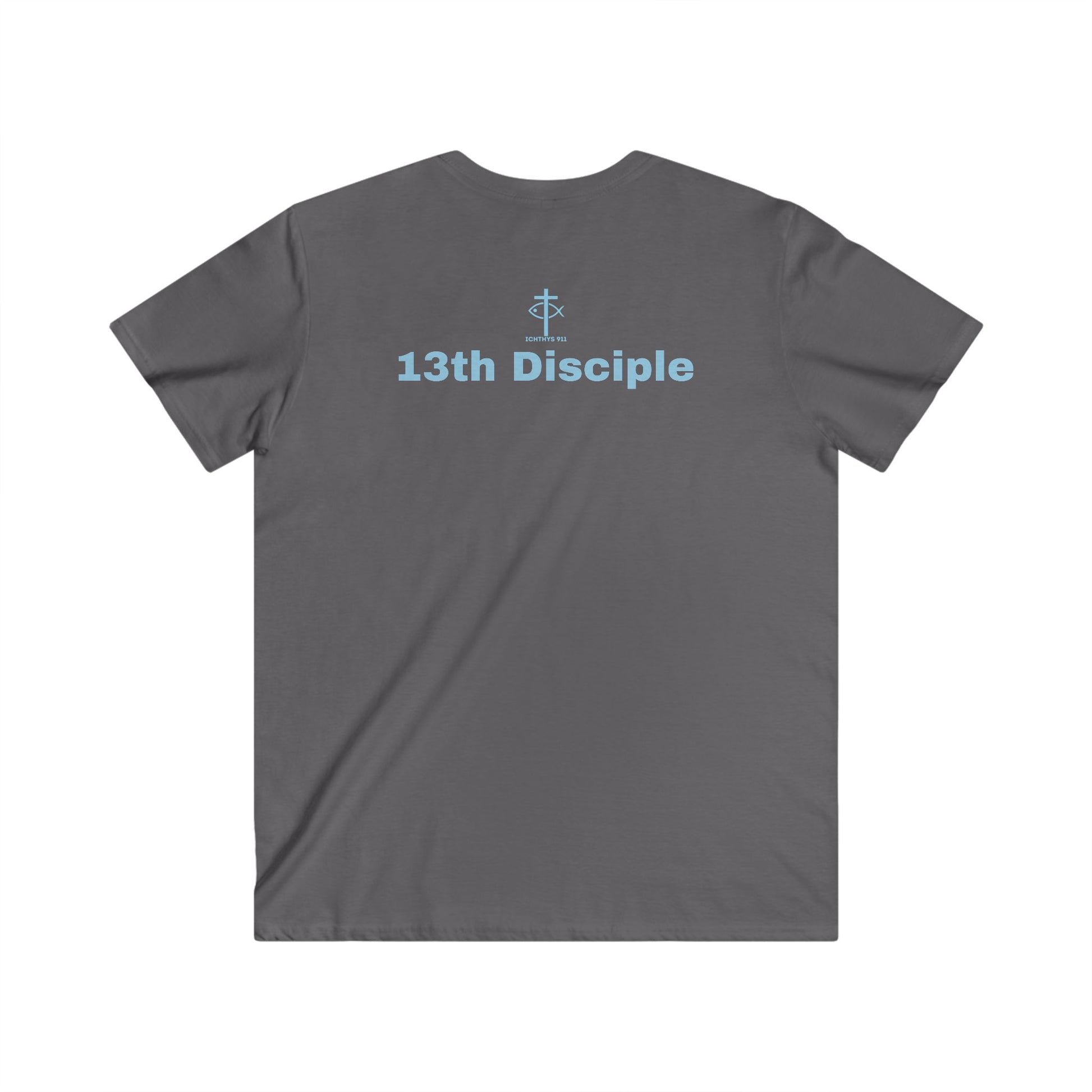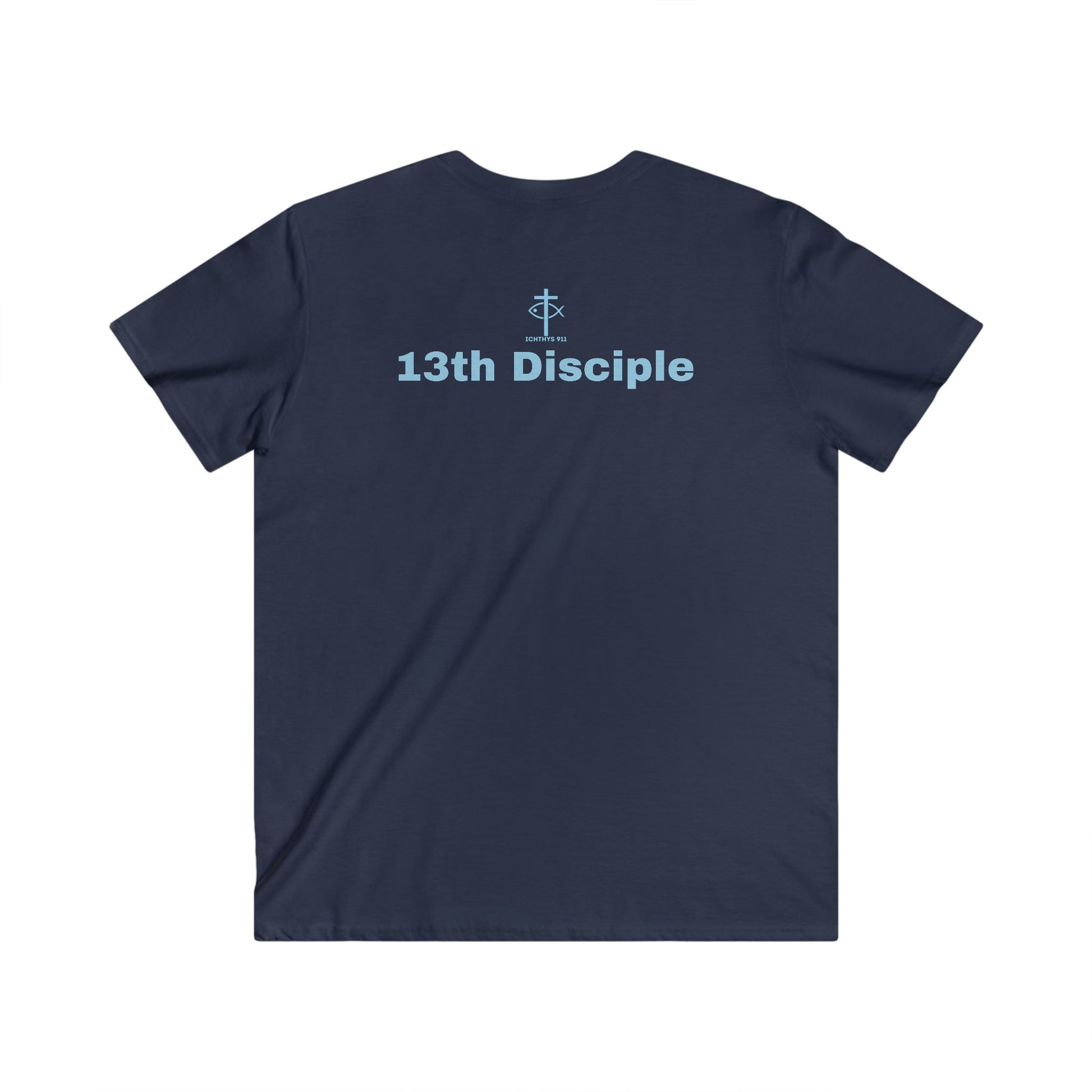 ICHTHYS 911 - "13th Disciple" - Blue Font - Men's Fitted V-Neck Tee - Casual Comfort for Everyday Wear - Faith Fashion - T-Shirt