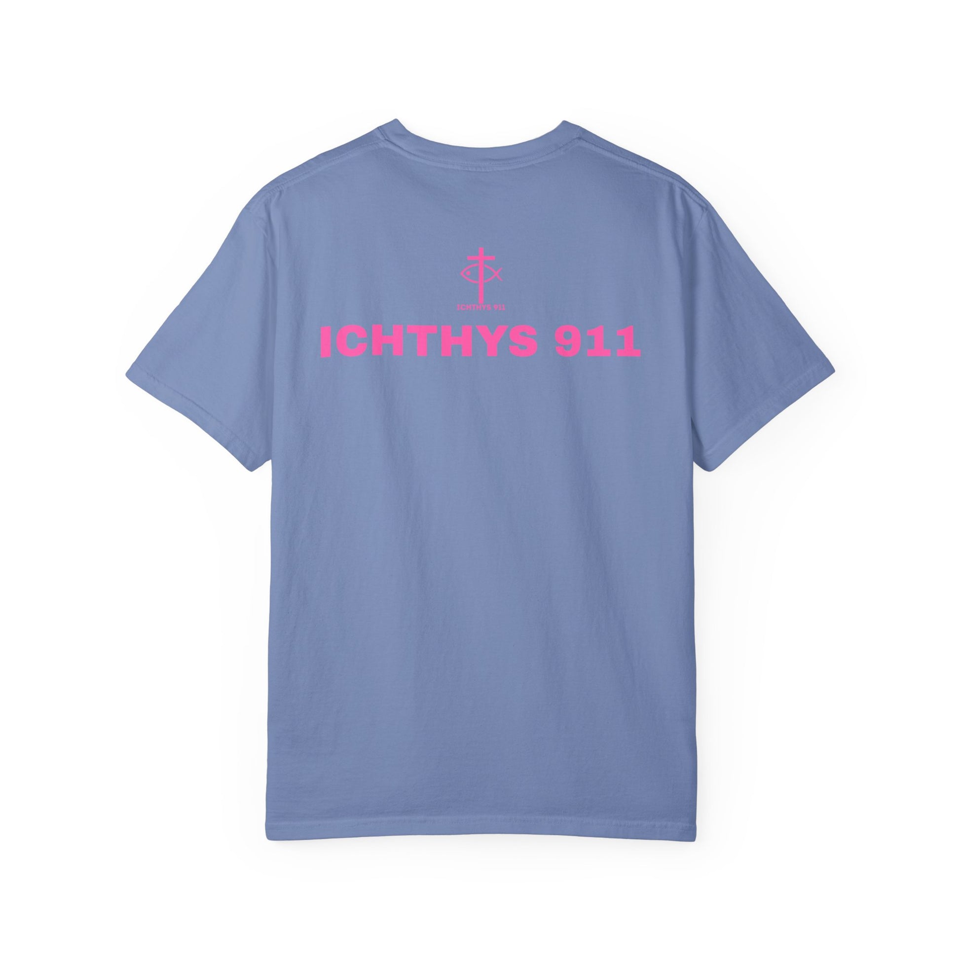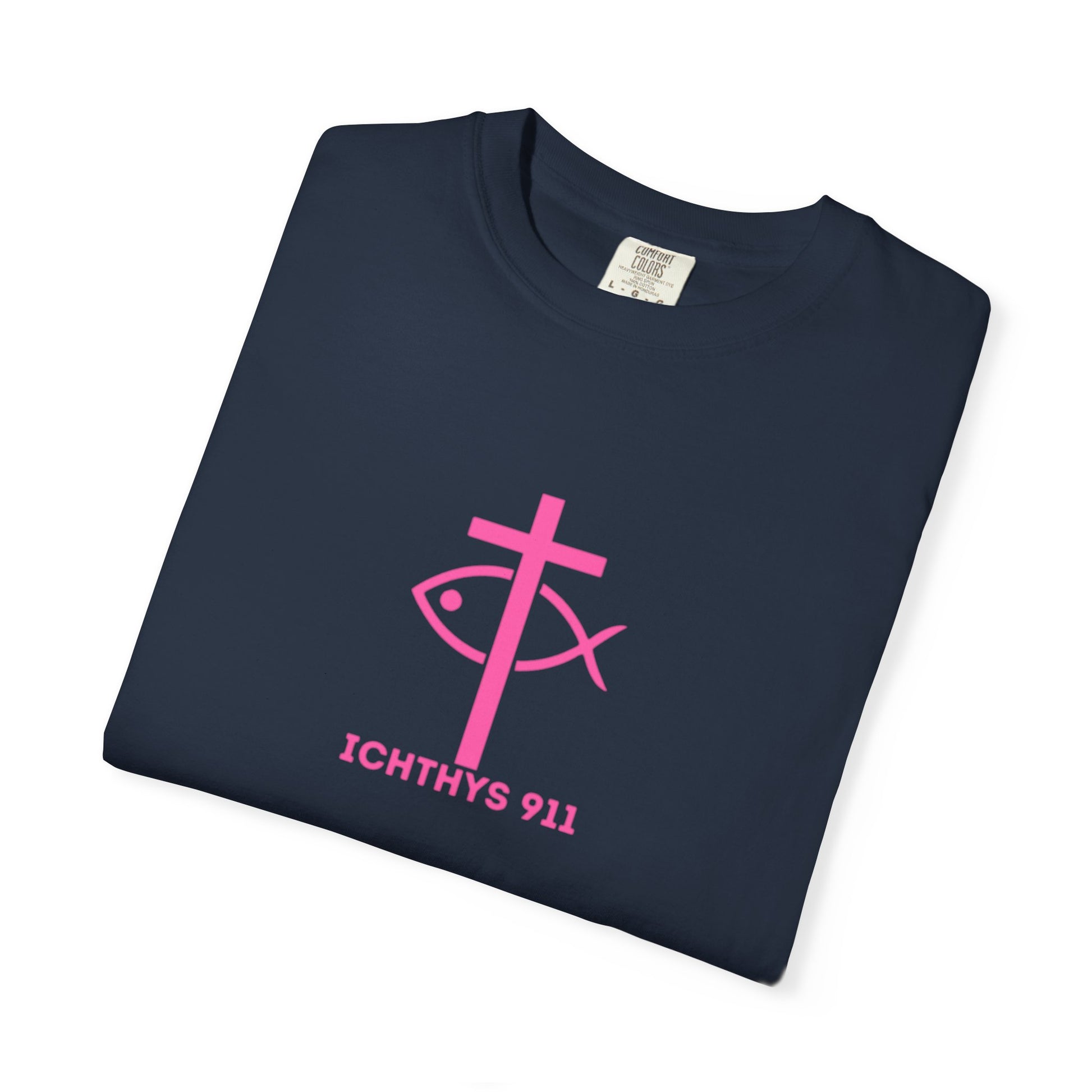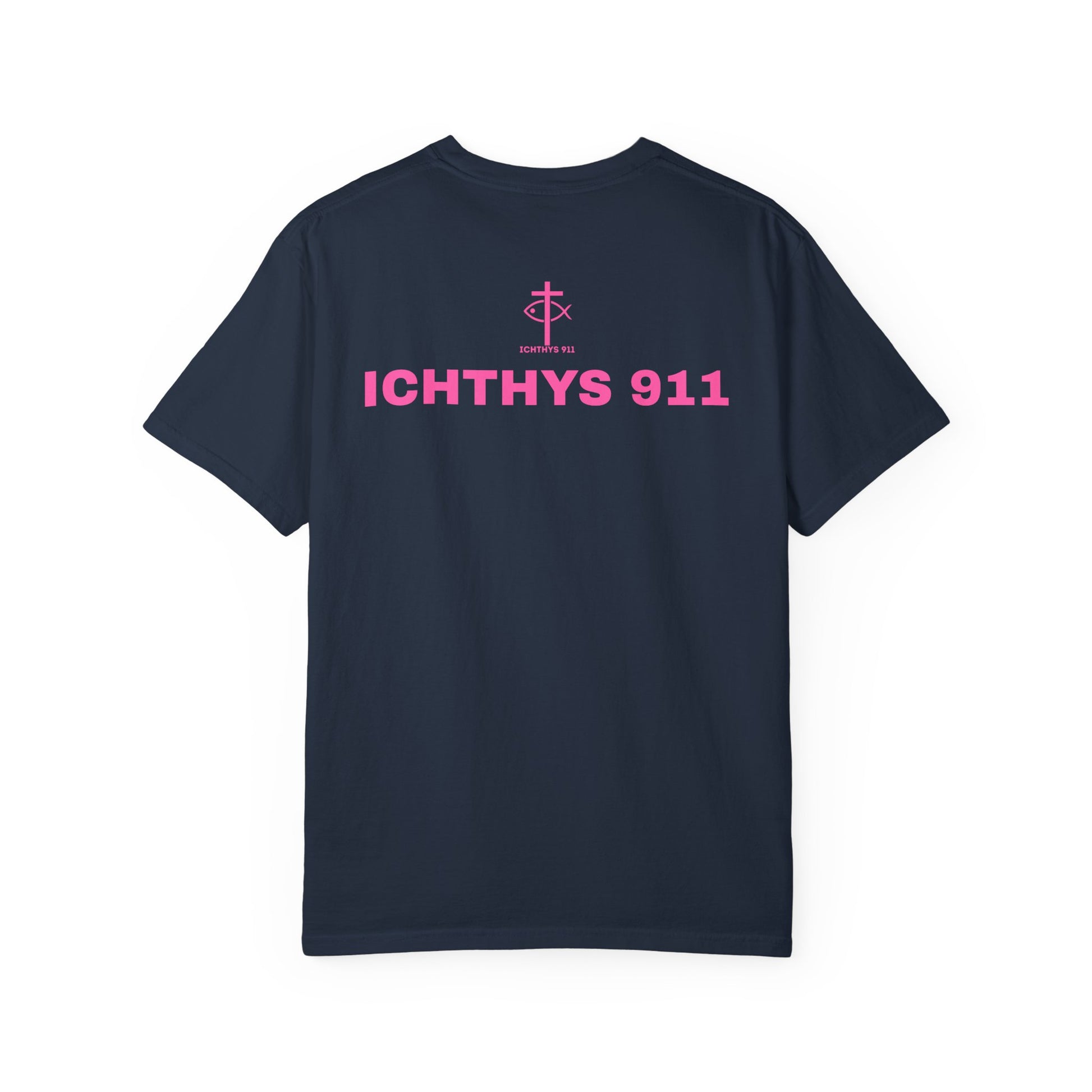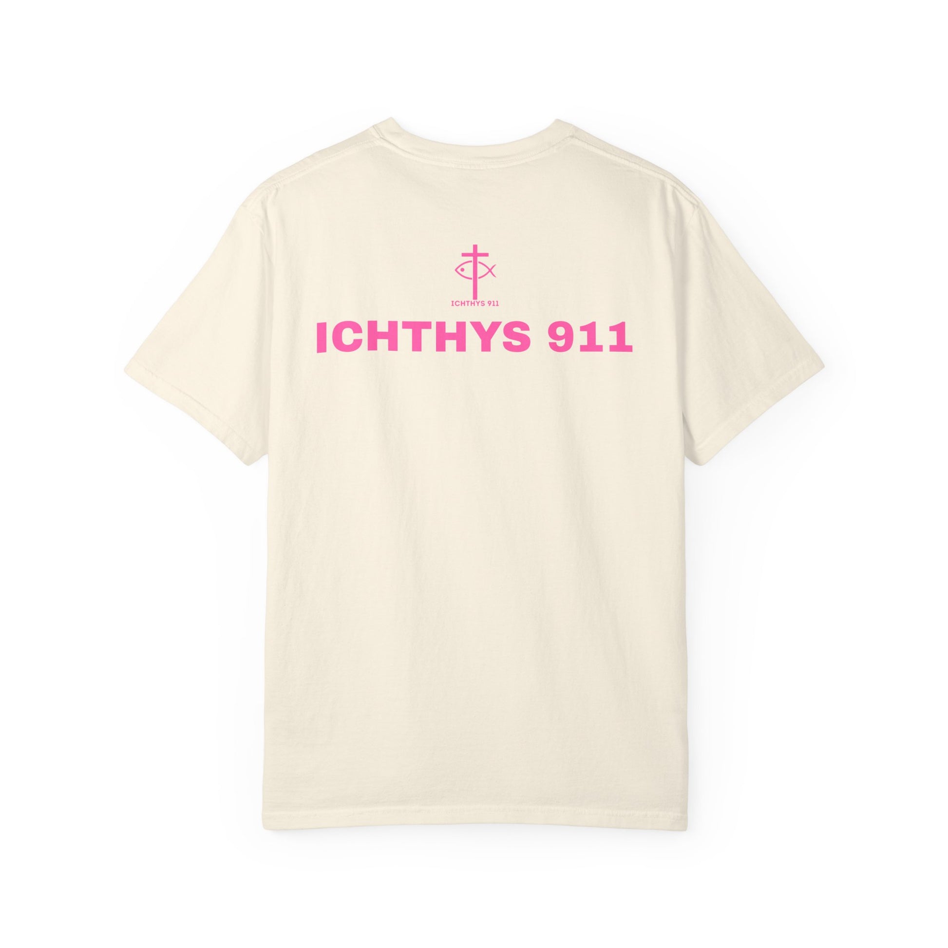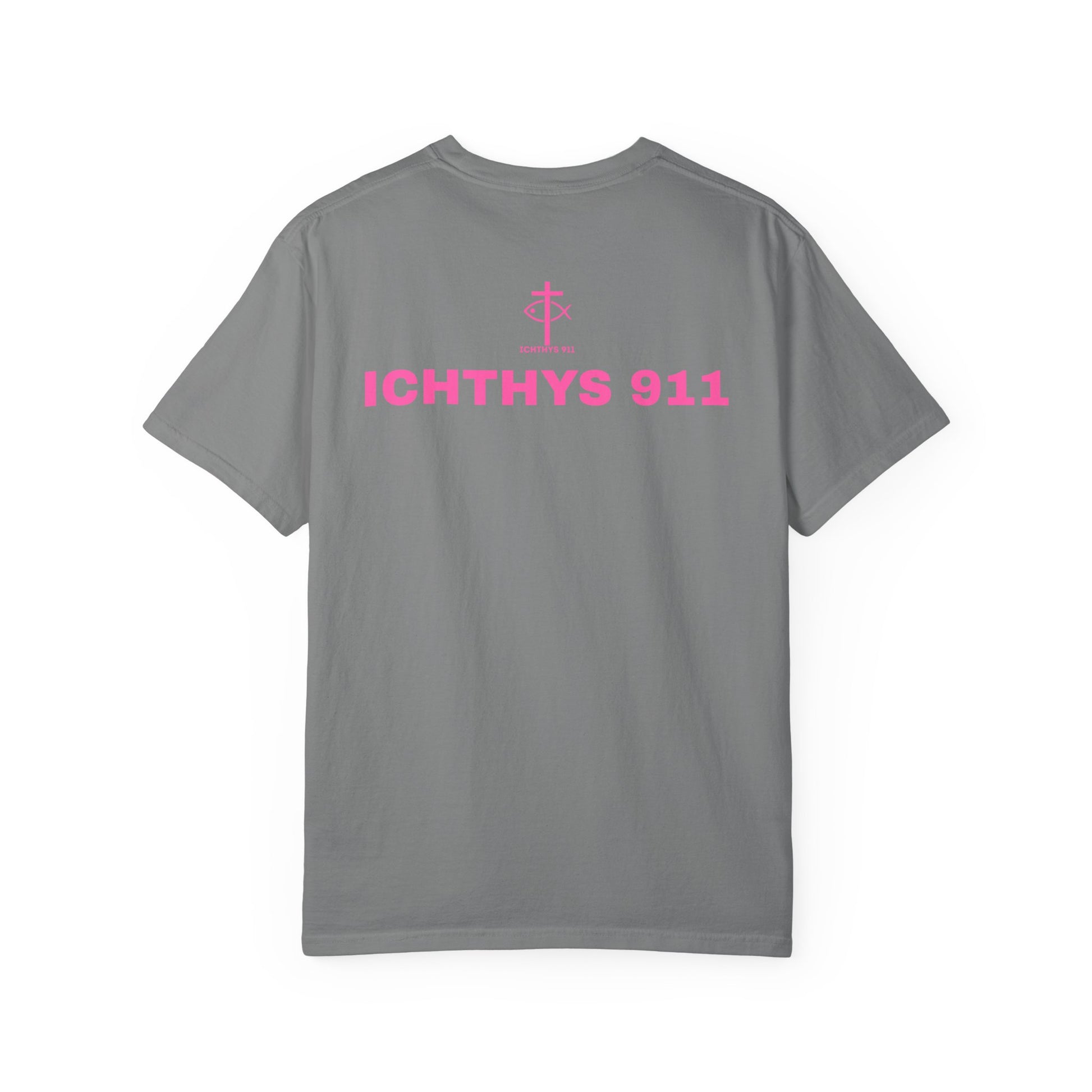 ICHTHYS 911 - "Authentic Design" - Pink Font - Unisex - Men T-Shirt - Women T-Shirt - Christian Streetwear T-Shirt – Jesus Gym & Faith Fashion, Unisex Garment-Dyed T-Shirt