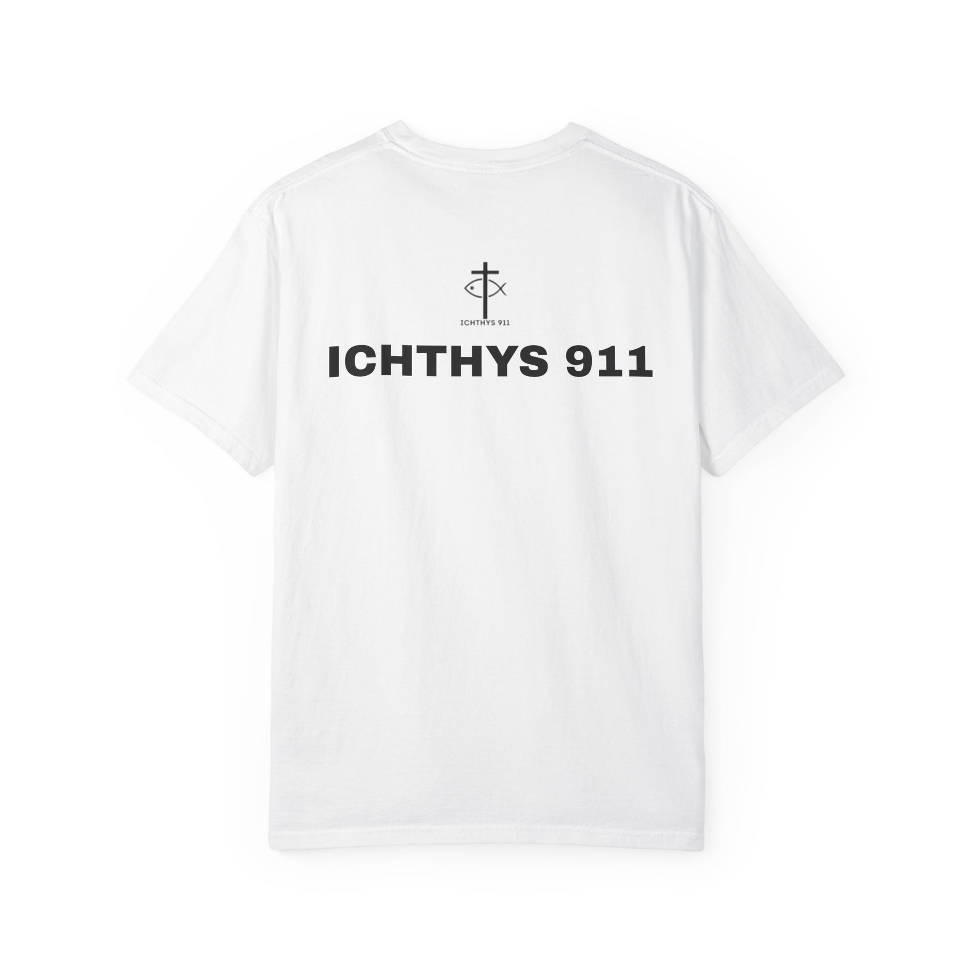 Step into your calling with the ICHTHYS 911 T-Shirt — where bold streetwear meets eternal purpose.