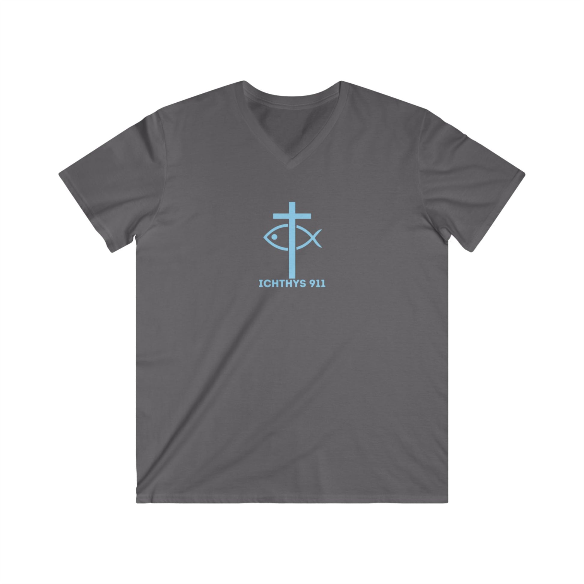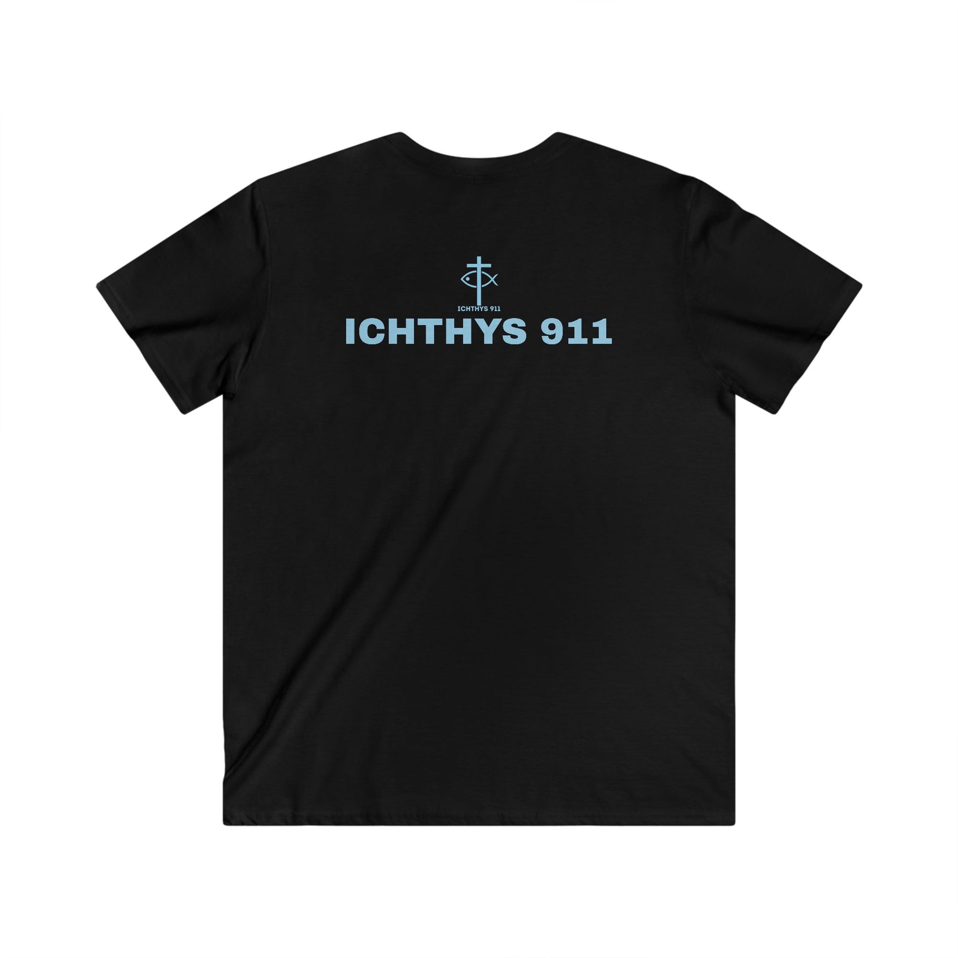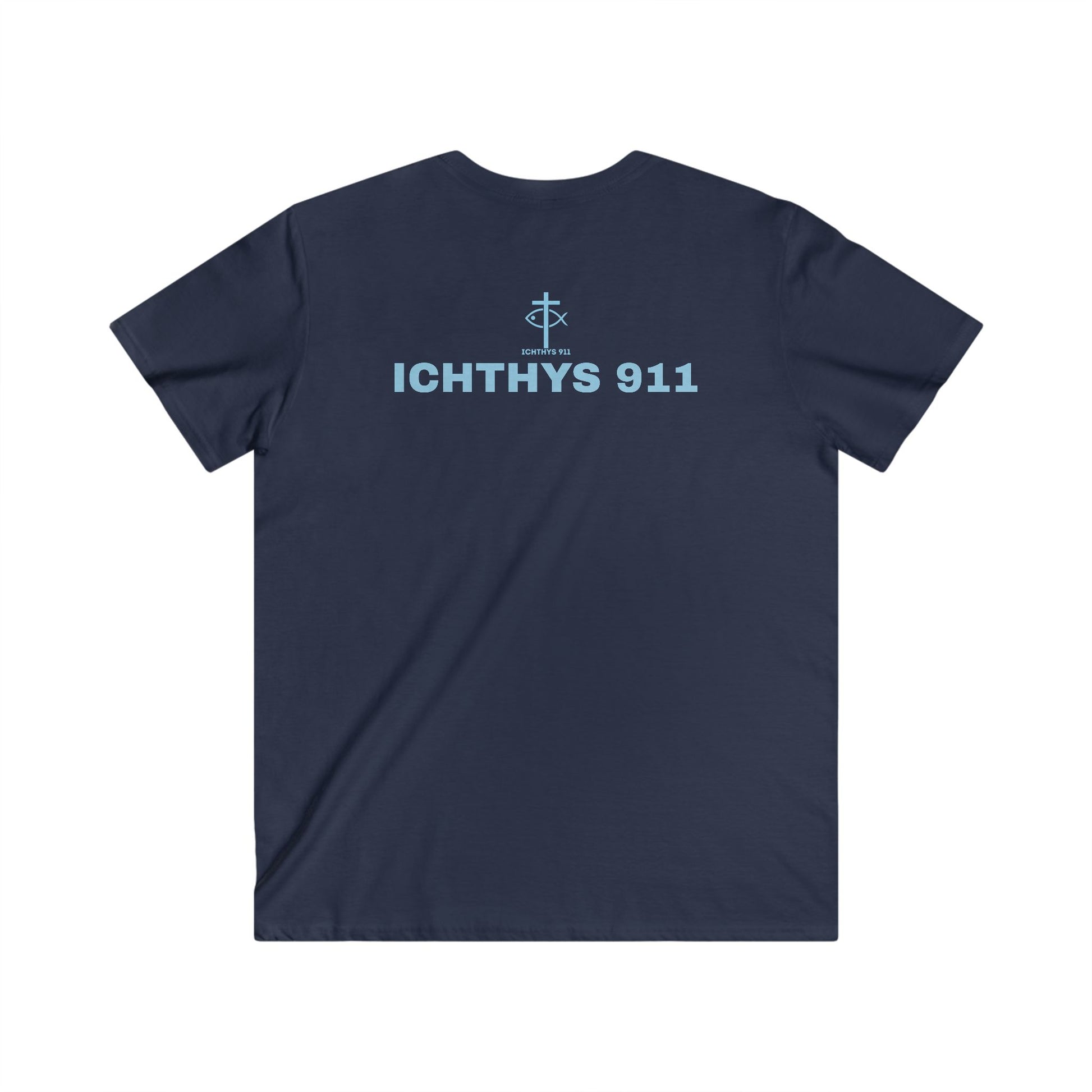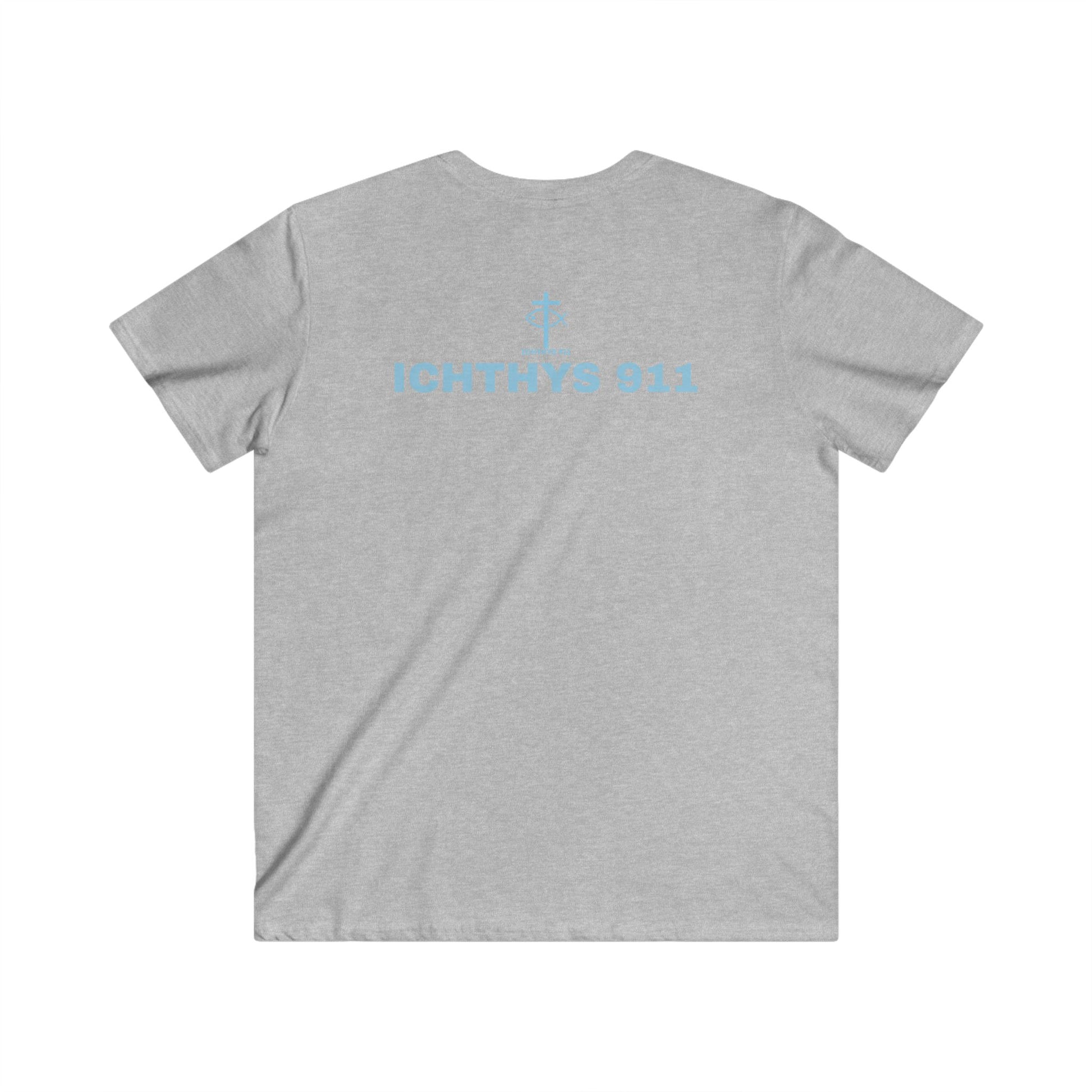 ICHTHYS 911 - "Authentic Collection" - Blue Font - Men's Fitted V-Neck Tee - Casual Comfort for Everyday Wear