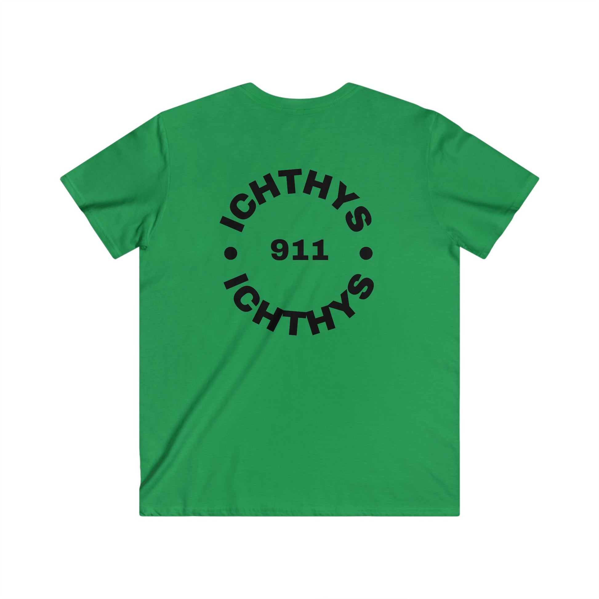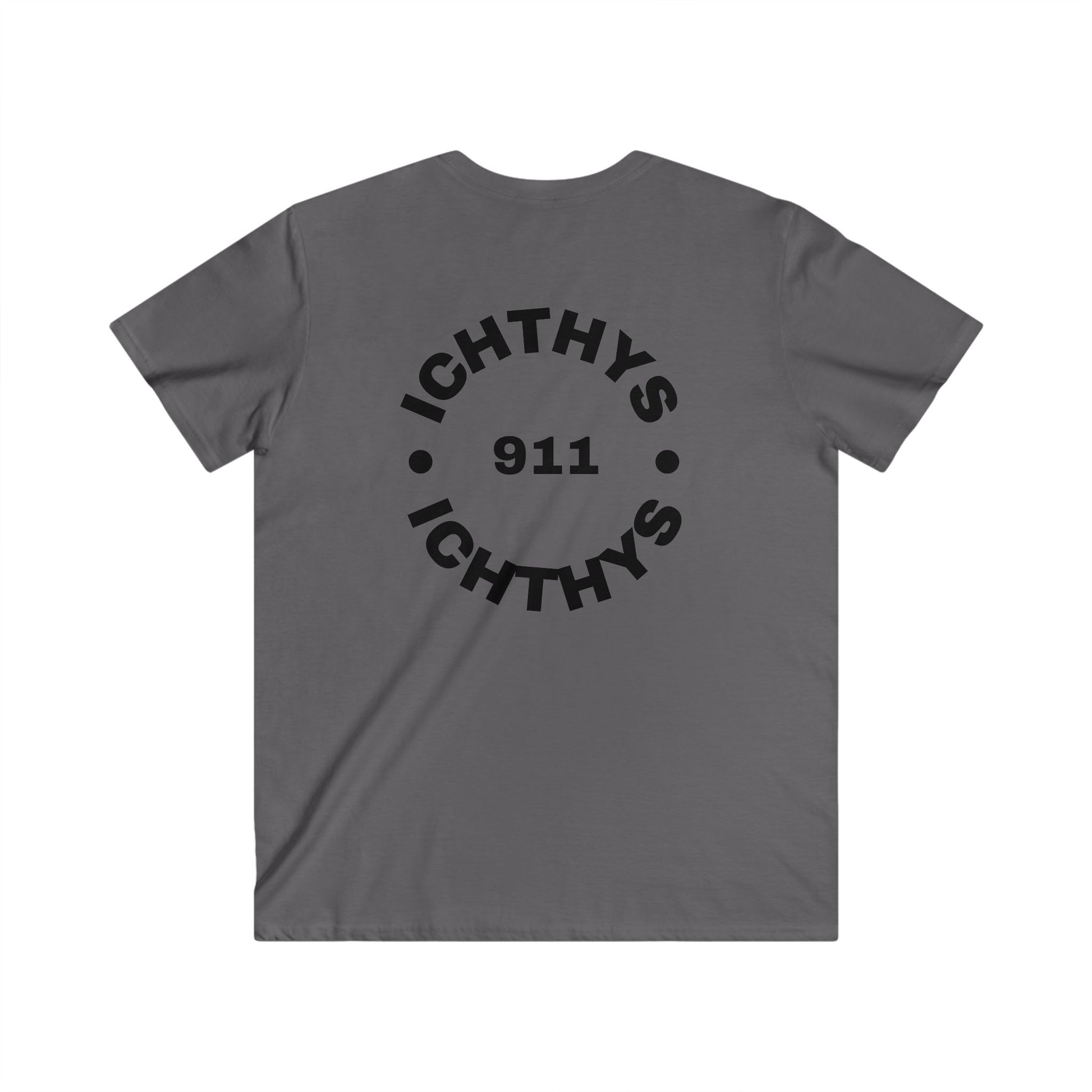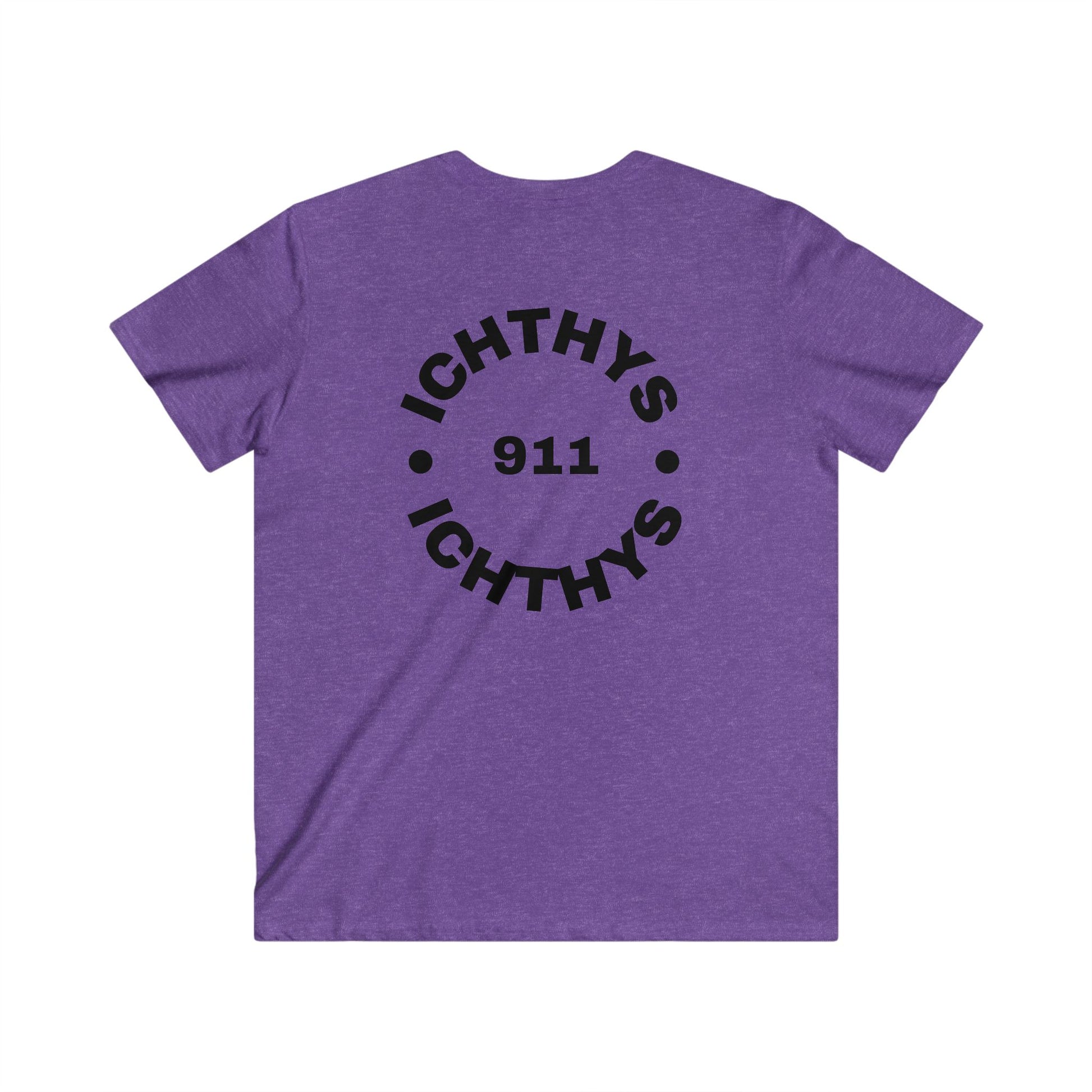 ICHTHYS 911 - Authentic Round Collection - Men's Fitted V-Neck Short Sleeve T - Shirt - Faith-Inspired - Christian Faith - Black Font