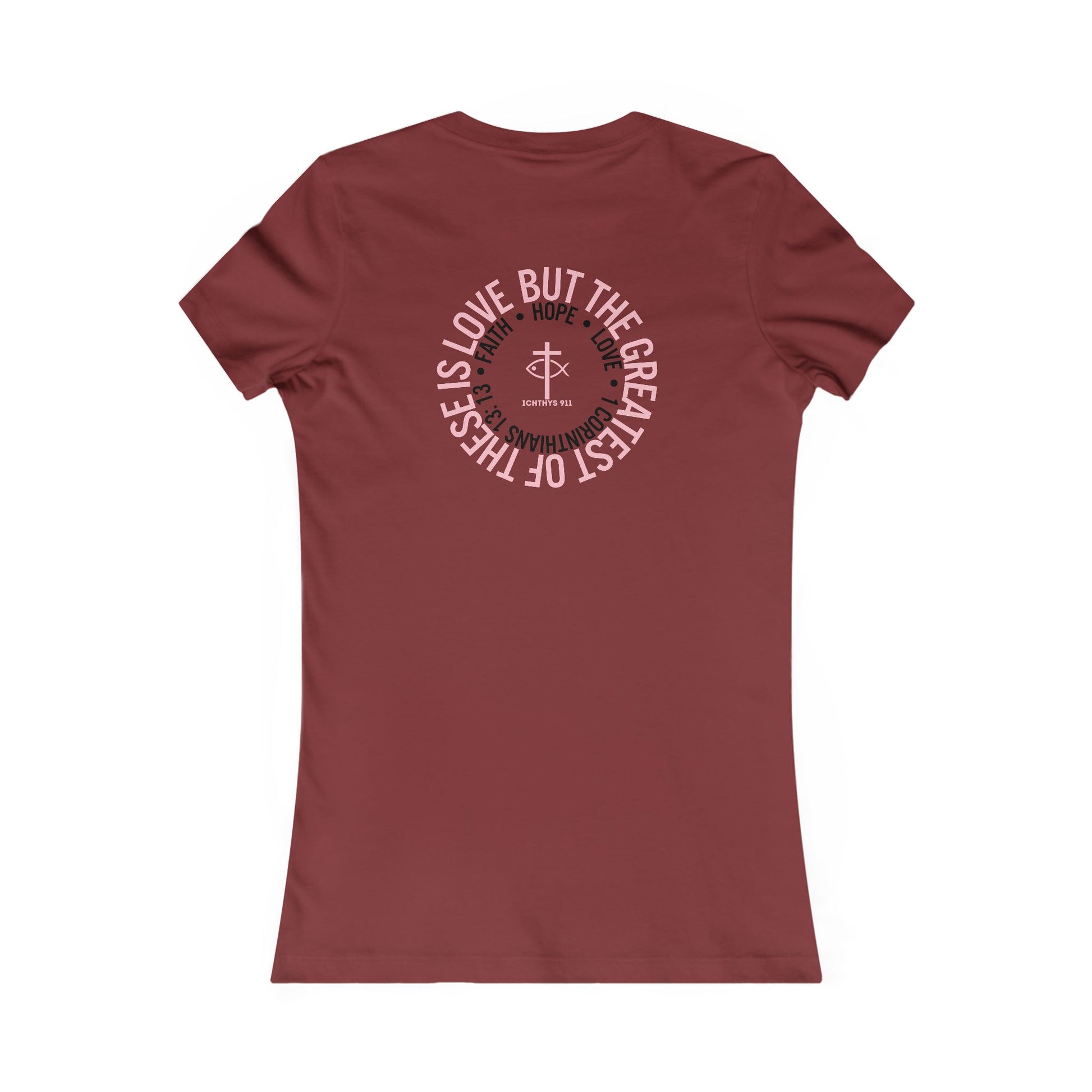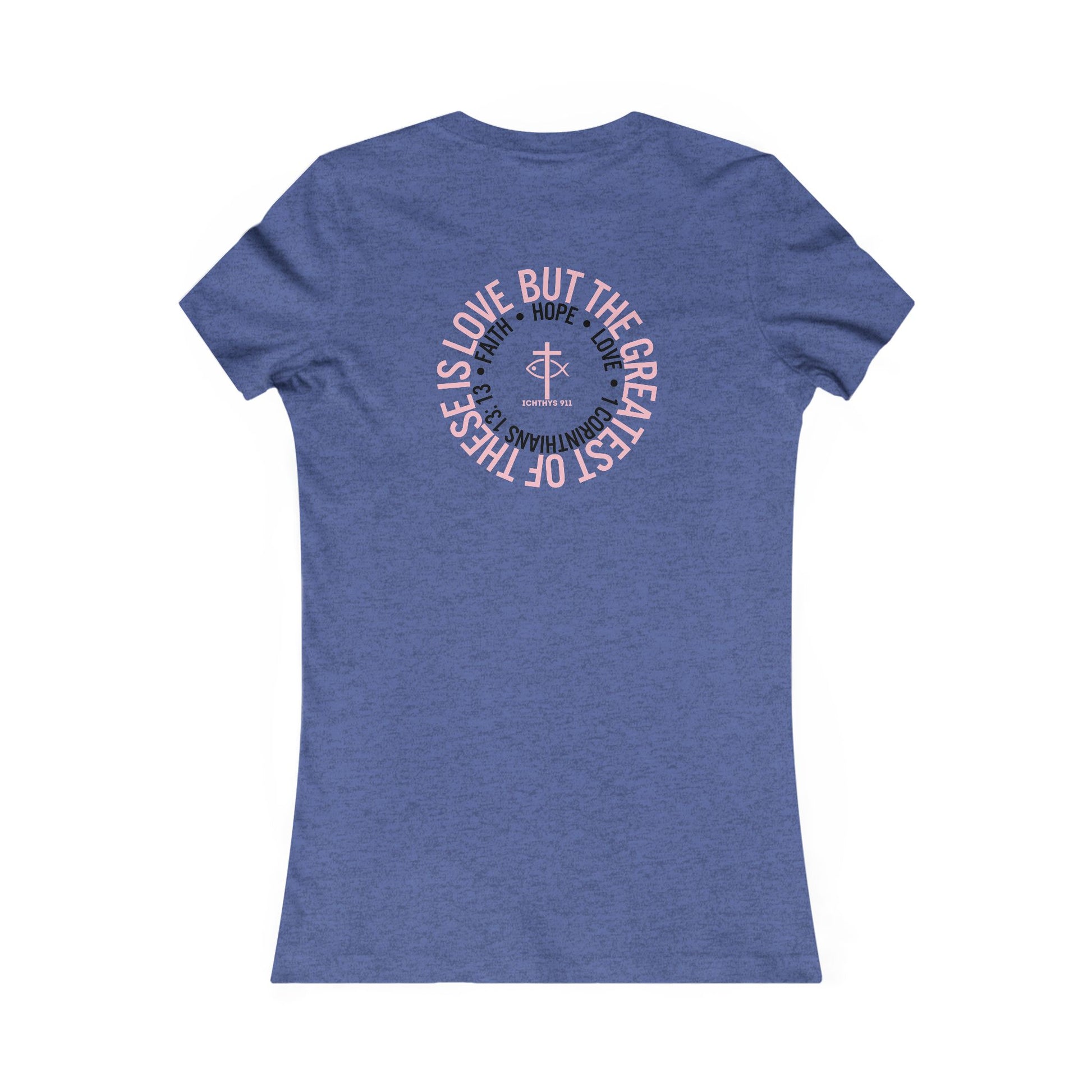 "Faith Hope Love" Inspirational Women's Favorite Tee - Love and Positivity Shirt - Slim Fit with Longer Body Length - ICHTHYS 911