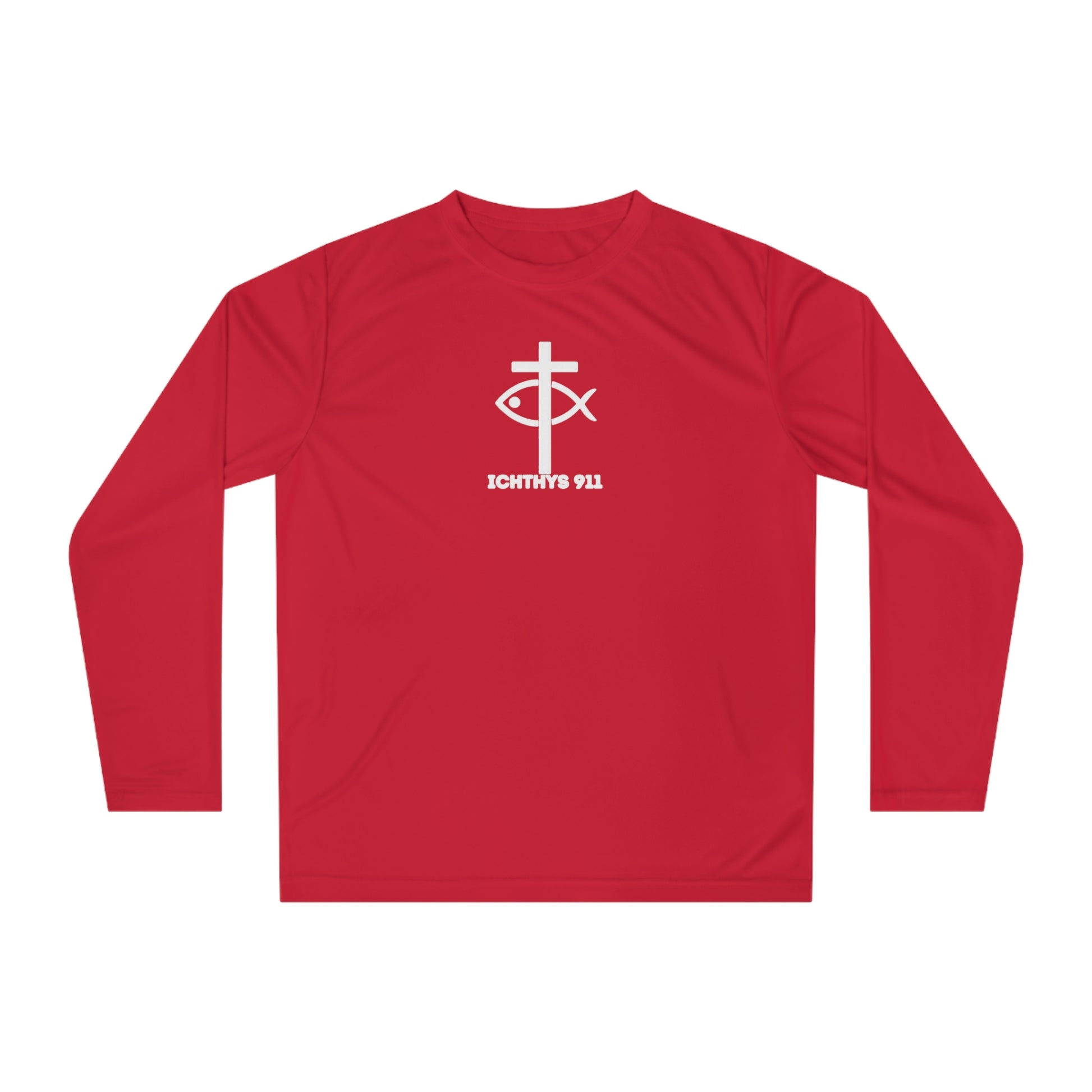 Experience the perfect blend of comfort and performance with this unisex Performance Long Sleeve Shirt. Ideal for outdoor enthusiasts and active lifestyles, this shirt is designed to keep you feeling cool and protected during your adventures. Whether you’re enjoying a sunny day at the beach, hitting the trails, or participating in outdoor sports, it offers UPF 30+ sun protection to shield you from harmful rays. Its moisture-wicking technology ensures you stay dry and comfortable, making it an essential piece of activewear for fitness lovers. This shirt is suitable for both men and women and is perfect for holidays, summertime activities, or just everyday wear. Celebrate your dynamic lifestyle with a shirt that works as hard as you do! Crafted for those who know they weren’t just saved—they were sent. Whether you're lifting in the gym, walking the boardwalk, or testifying on TikTok, this piece speaks volumes without saying a word. With "Faith & Strength" boldly printed on the back (or front, your choice) and our signature ICHTHYS 911 logo anchoring the design, it represents the mission, the mindset, and the movement. Made for modern-day disciples, Kingdom builders, Christian influencers, and redeemed rebels — this piece is more than apparel, it’s armor.
