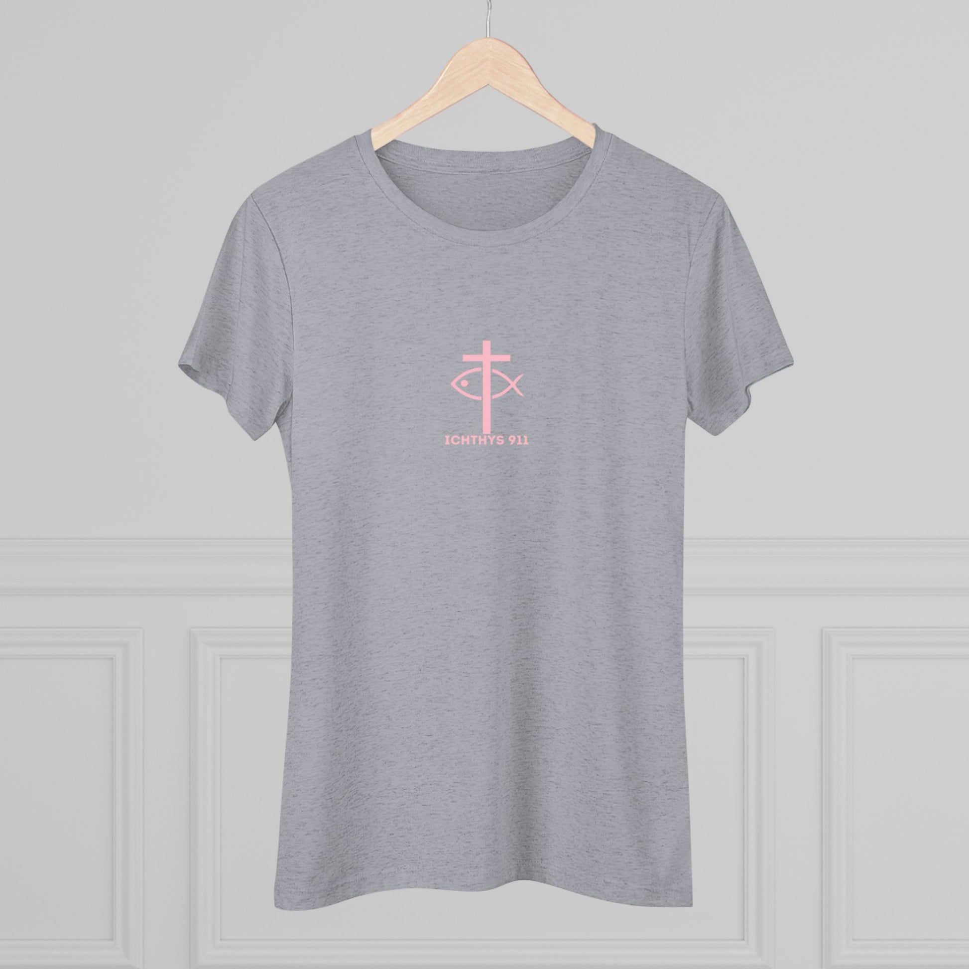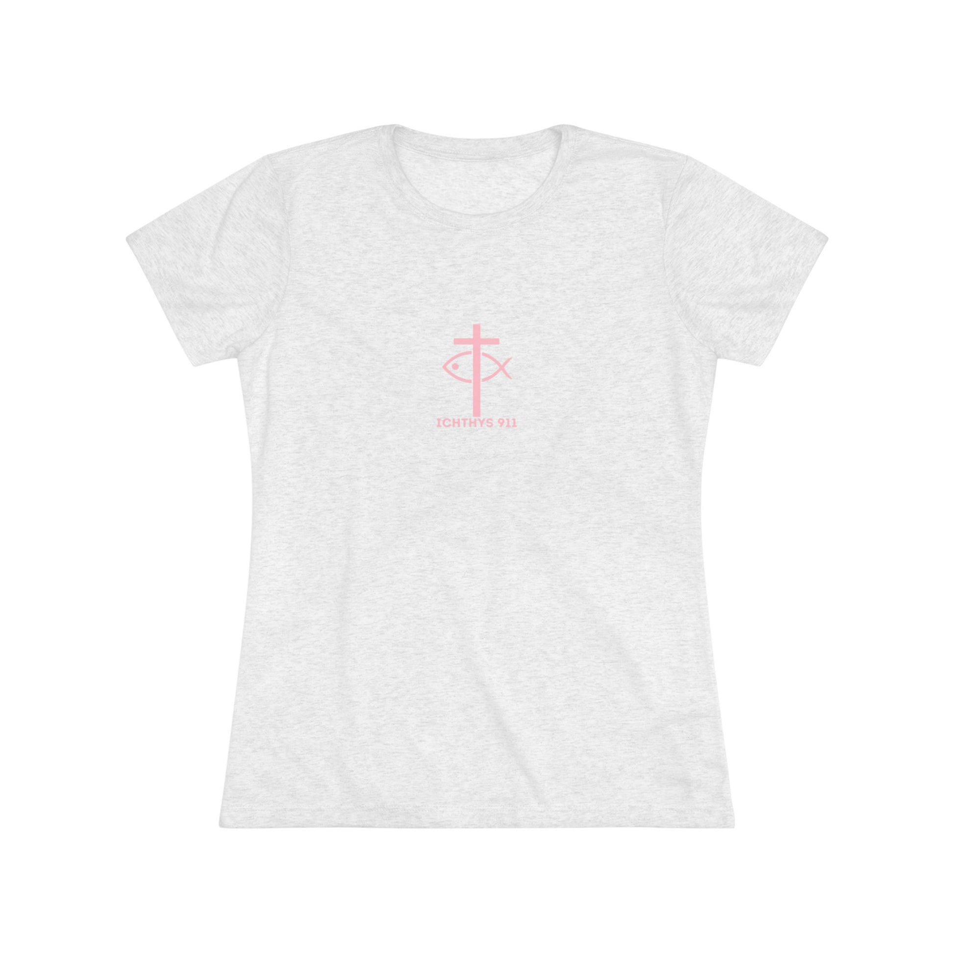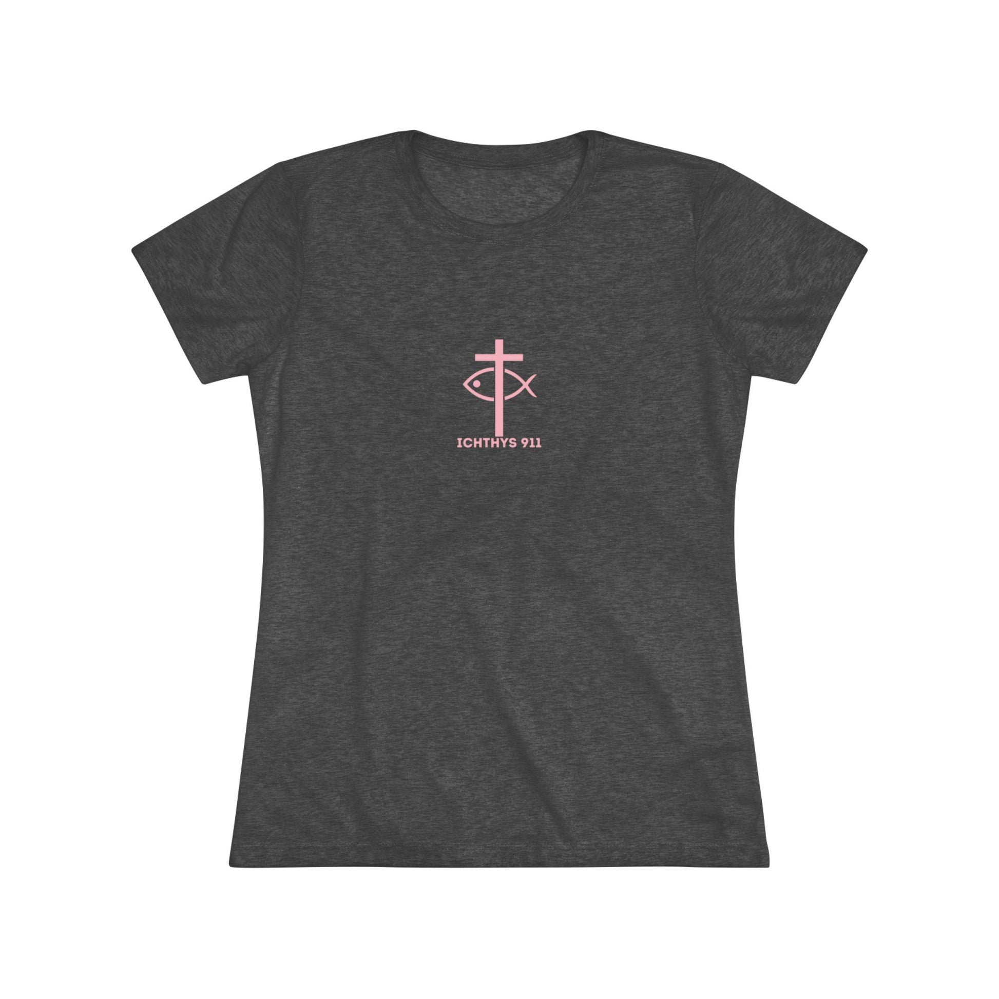 ICHTHYS 911 "IC Round Collection" Pink Font - Inspirational Women's Triblend Tee - Women T-Shirt - 50% polyester, 25% cotton, 25% ryaon