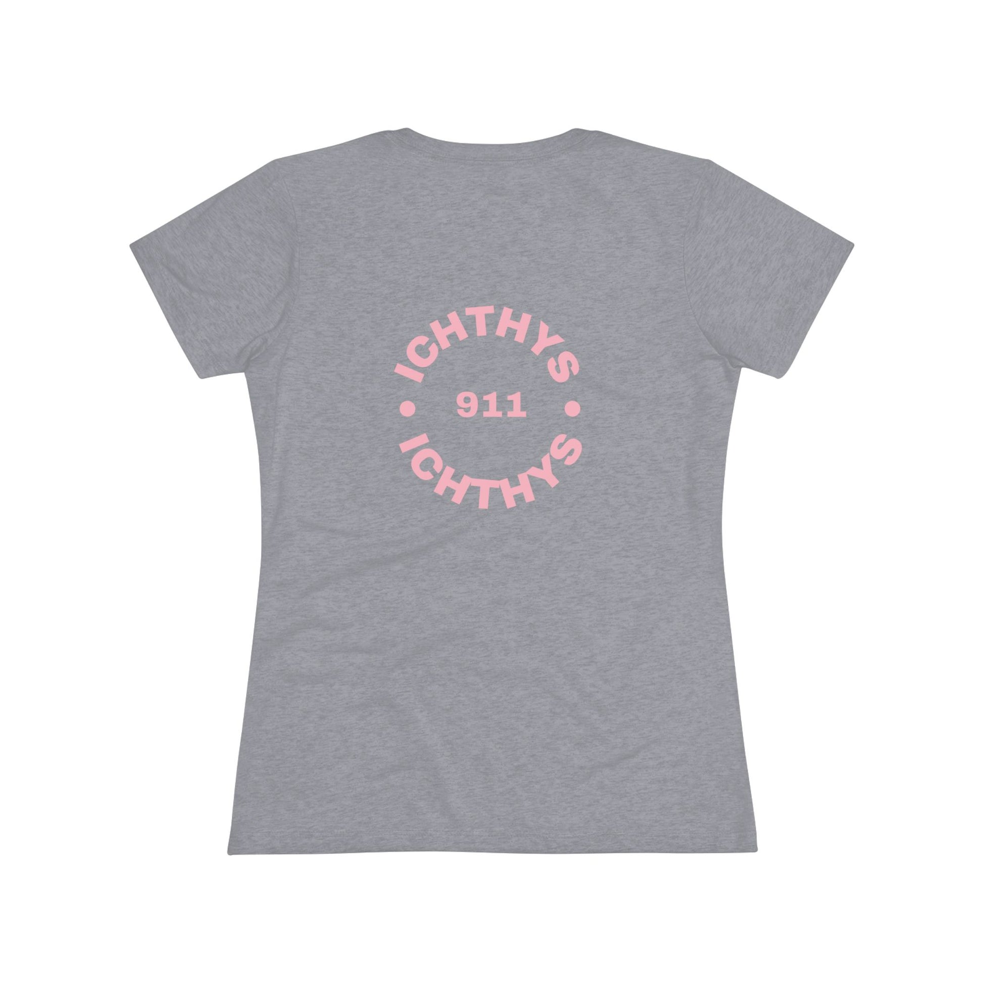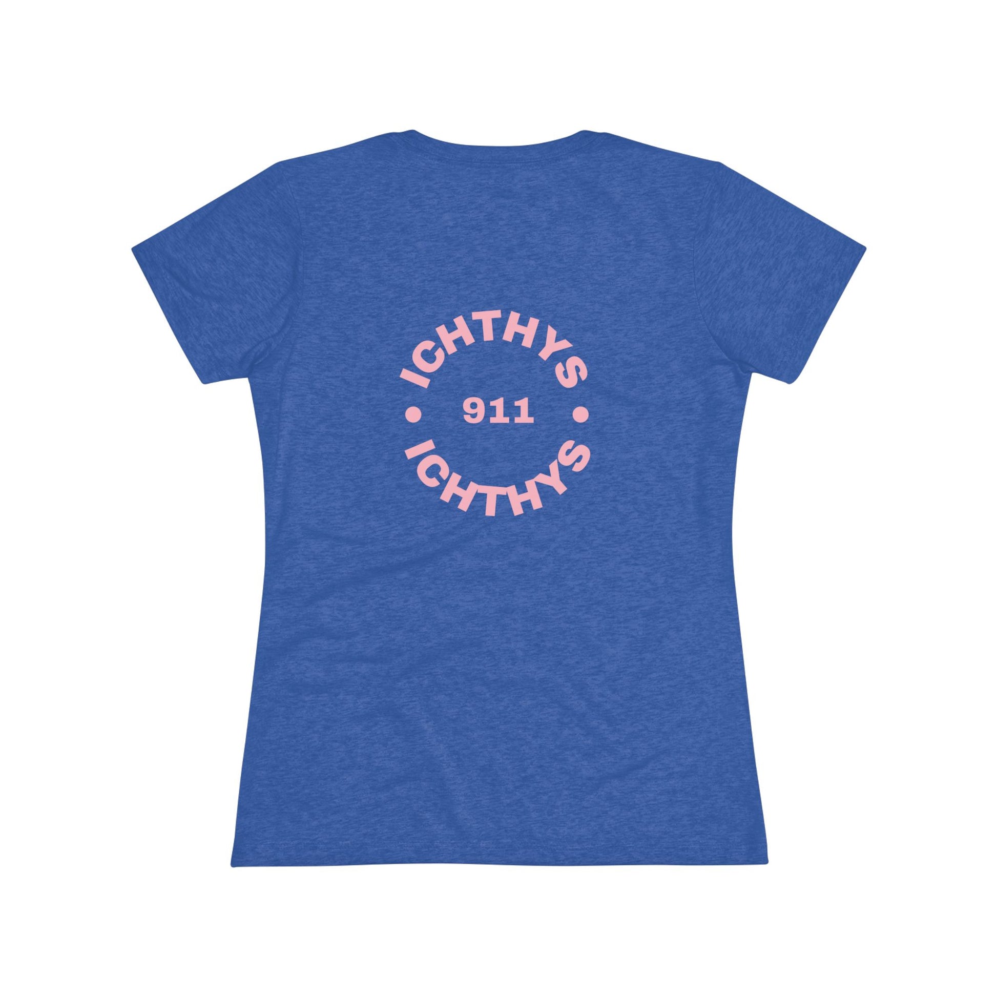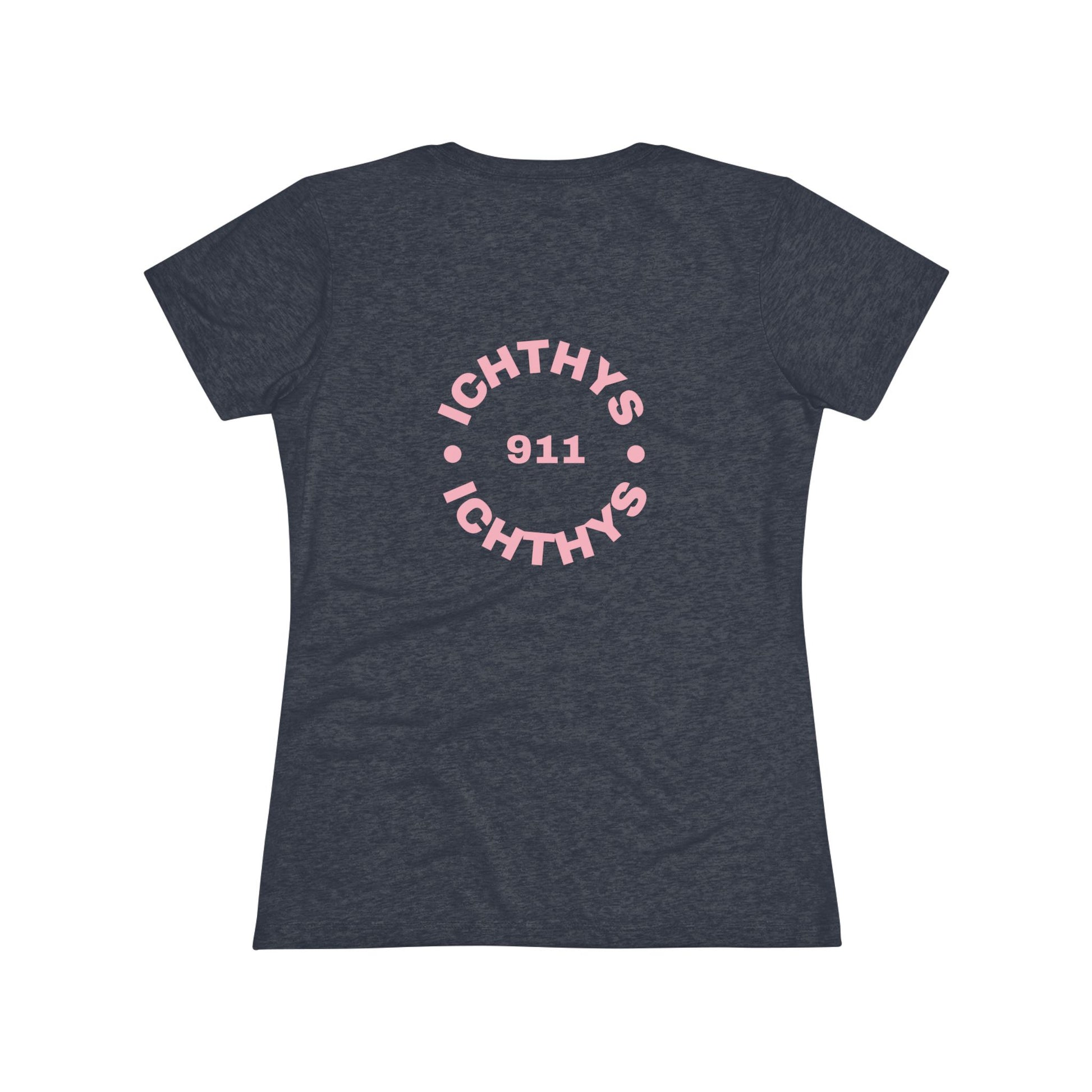 ICHTHYS 911 "IC Round Collection" Pink Font - Inspirational Women's Triblend Tee - Women T-Shirt - 50% polyester, 25% cotton, 25% ryaon