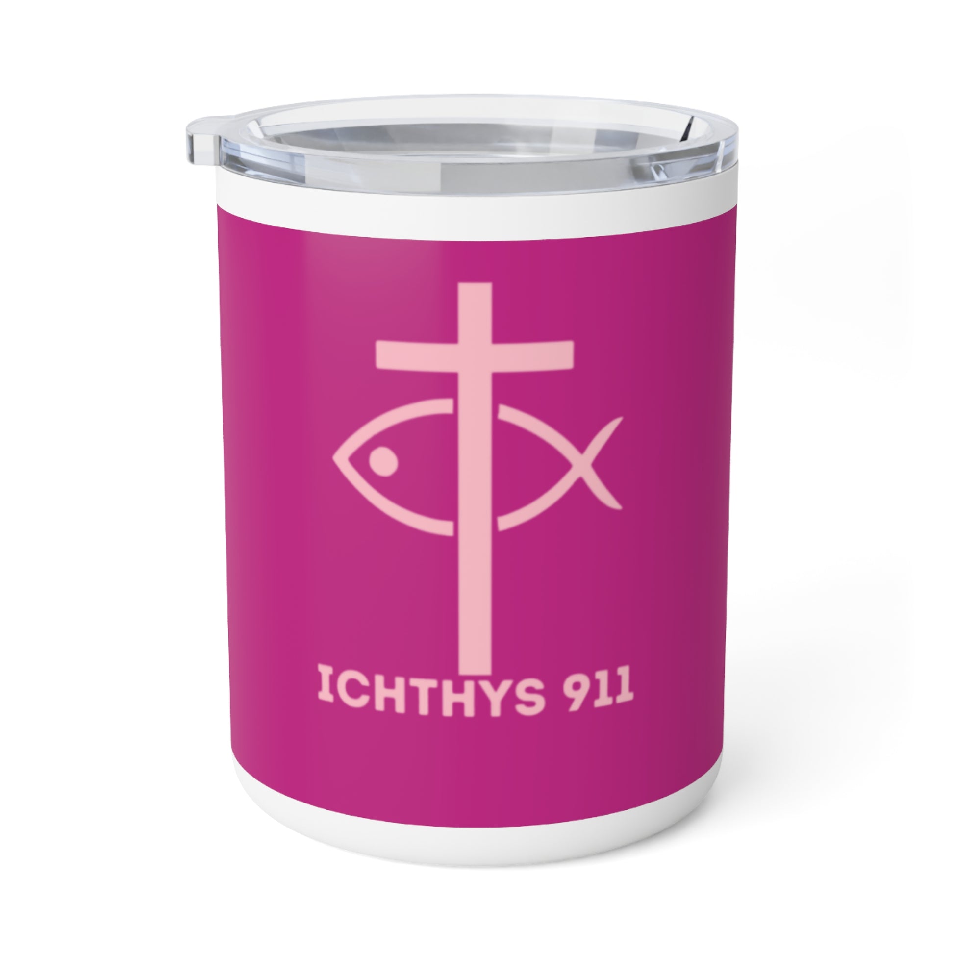 ICHTHYS 911 Insulated Coffee Mug – 10oz White Christian Travel Tumbler