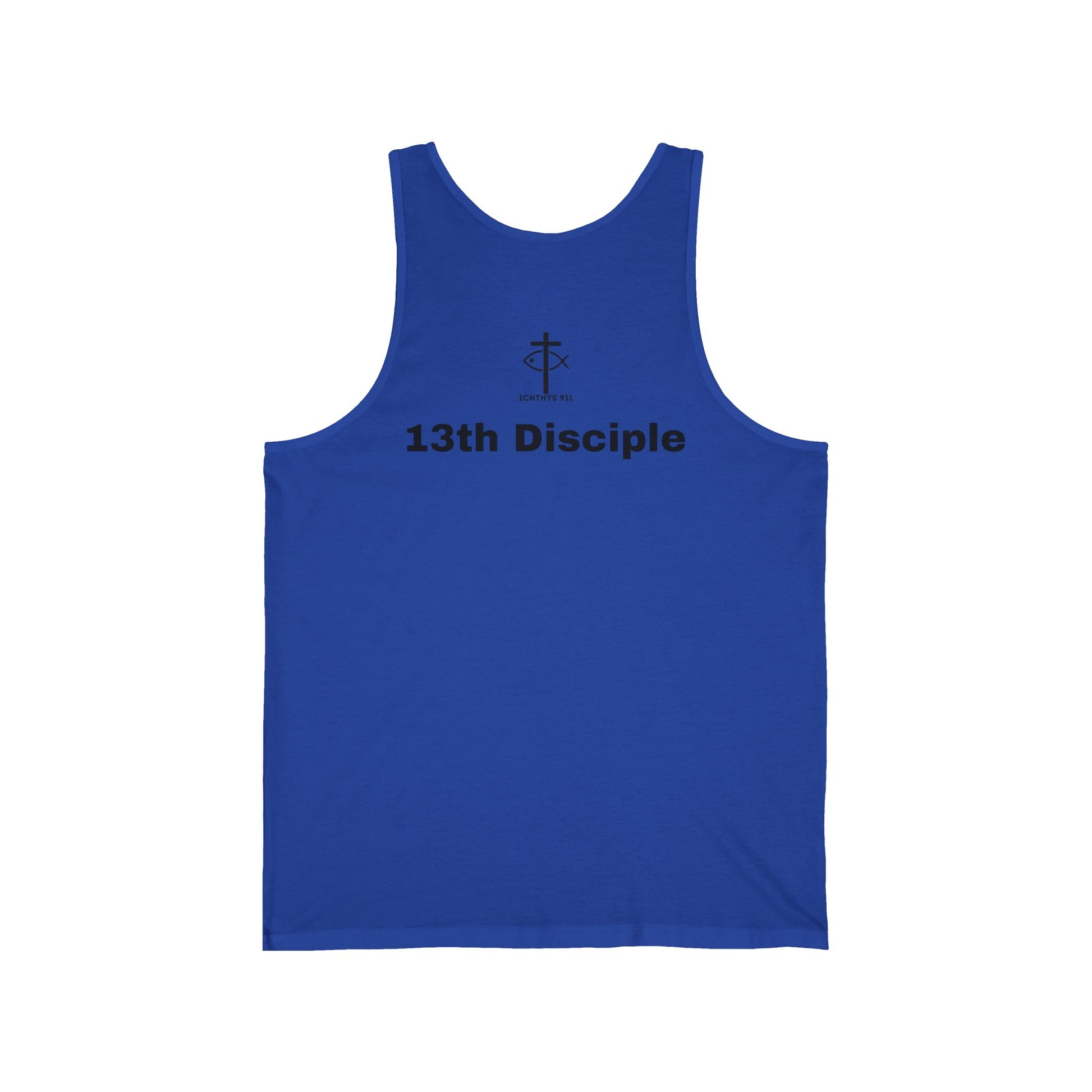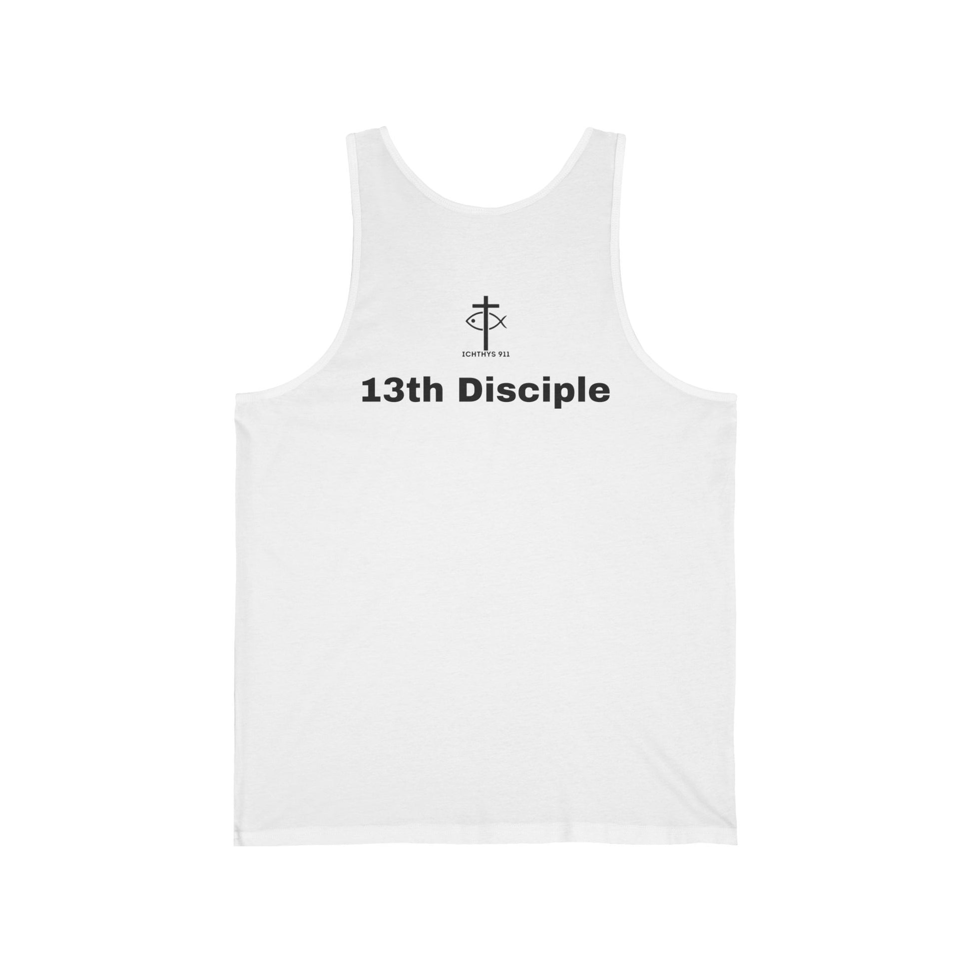 13th Disciple Collection - Black Font - Unisex Jersey Tank Top - Casual Christian Symbol Graphic Tank Top - ICHTHYS 911 - Workout Tank Top - Men Tank - Gym Clothes - Faith Gear