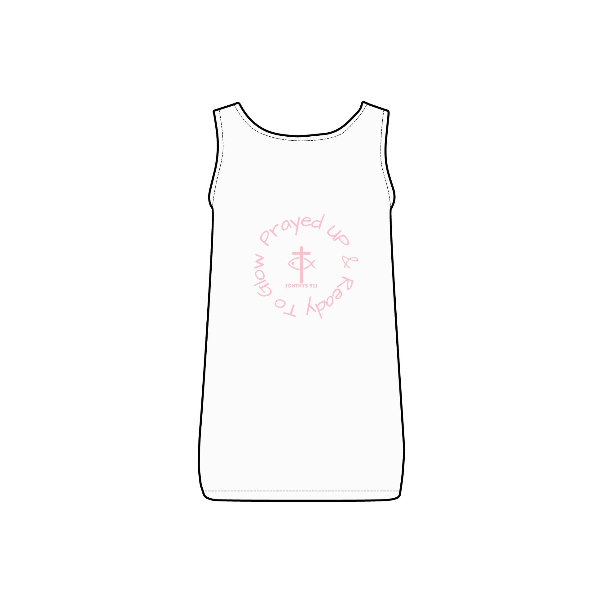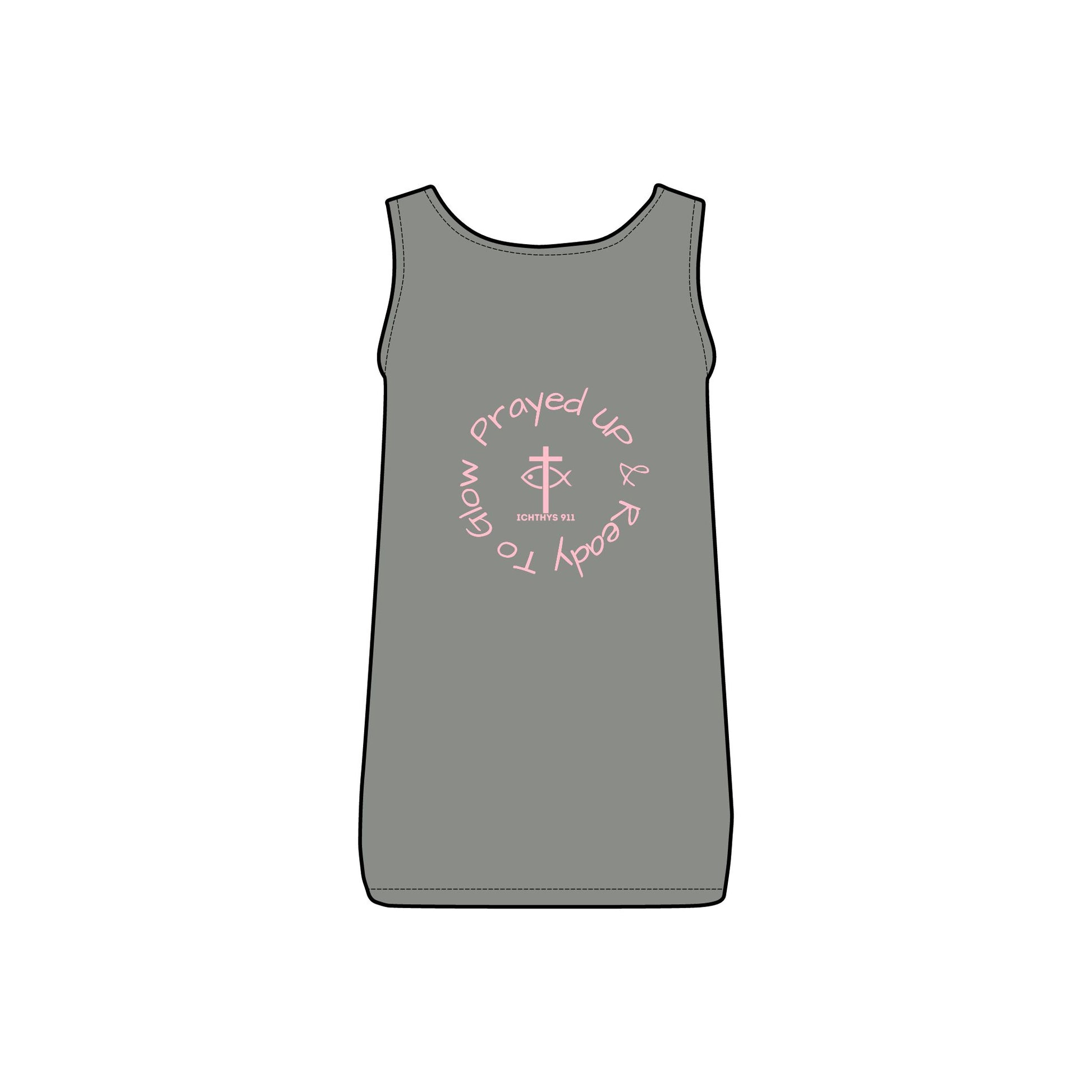 ICHTHYS 911 - Pink Font - "Dressed in Grace, Covered in Faith" - Comfortable Women's Micro Ribbed Tank with Inspirational Design - Slim fit - Featuring exclusive ICHTHYS 911 Logo