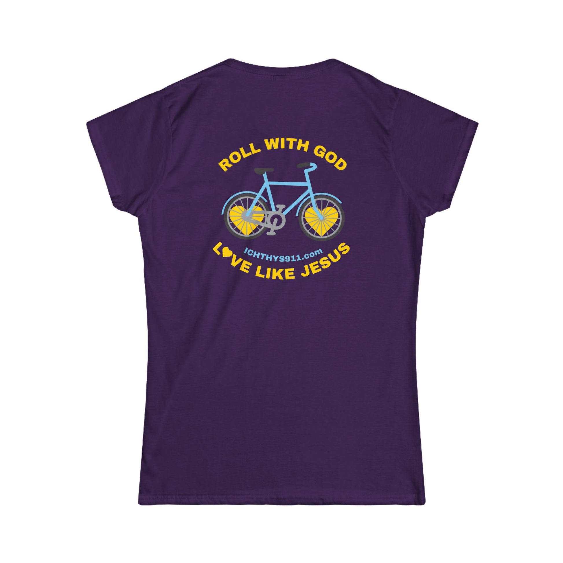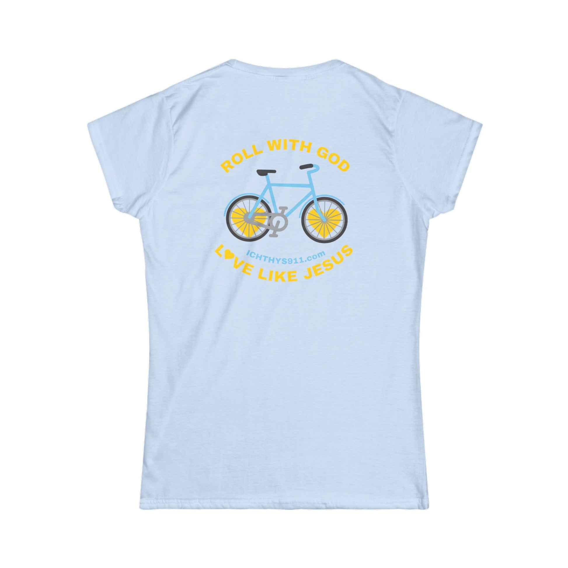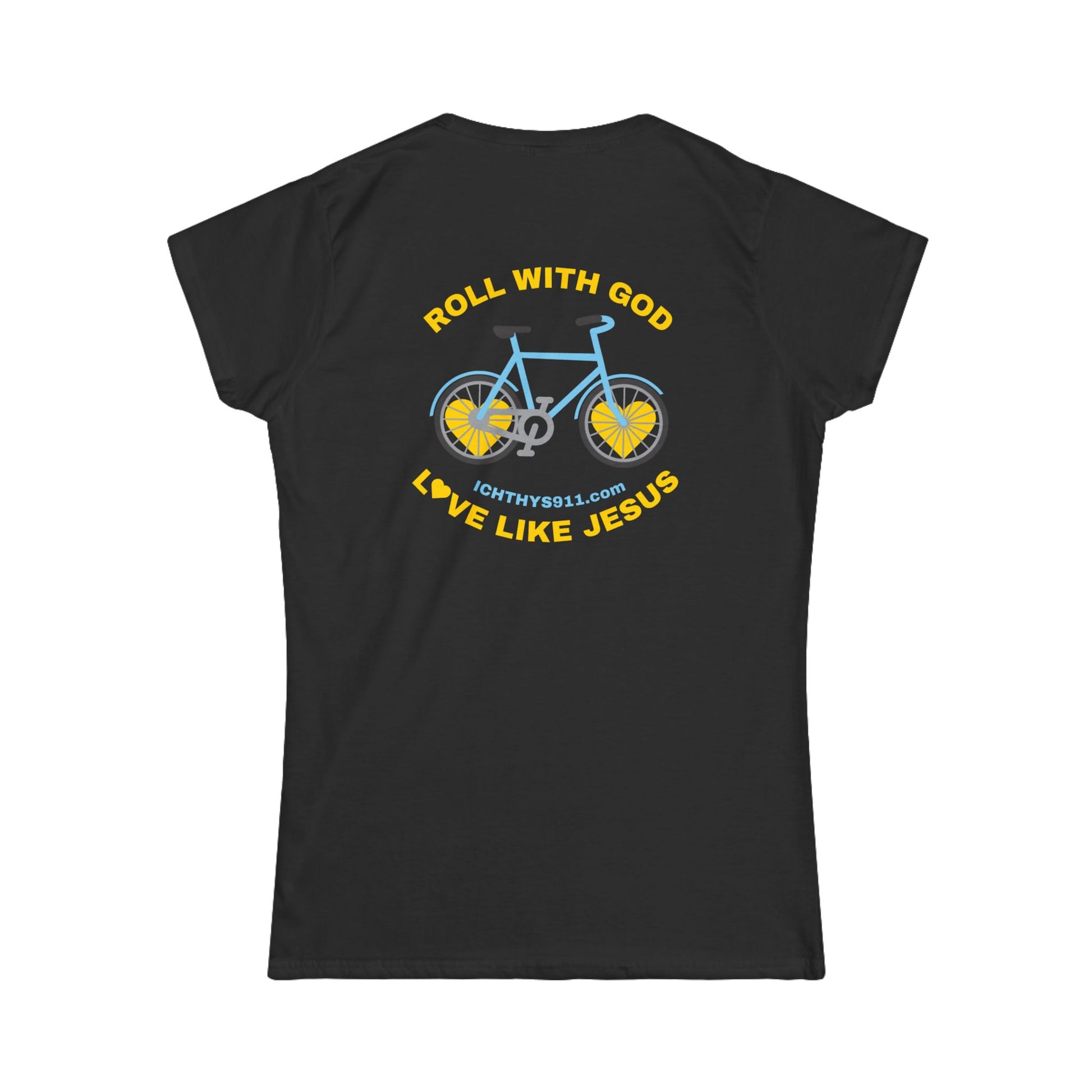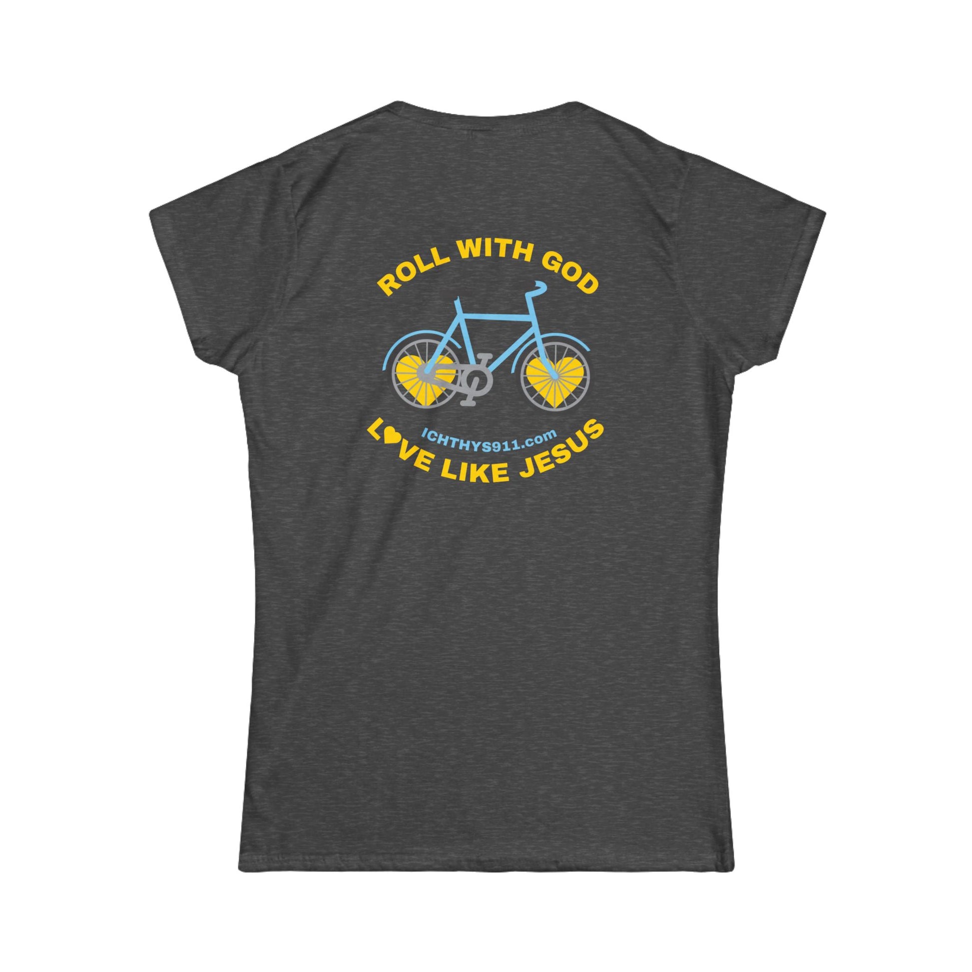 ICHTHYS 911 - "Roll With God Love Like Jesus" Faith-Inspired Women's Tee - Summer Light T-Shirt - Wear Your Faith - Softstyle Tee