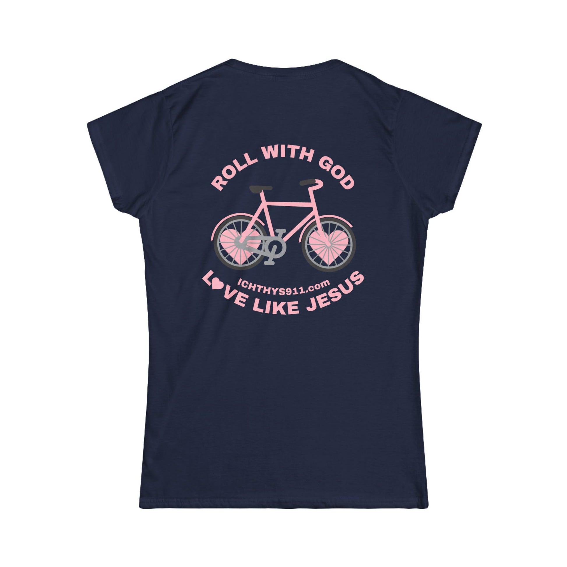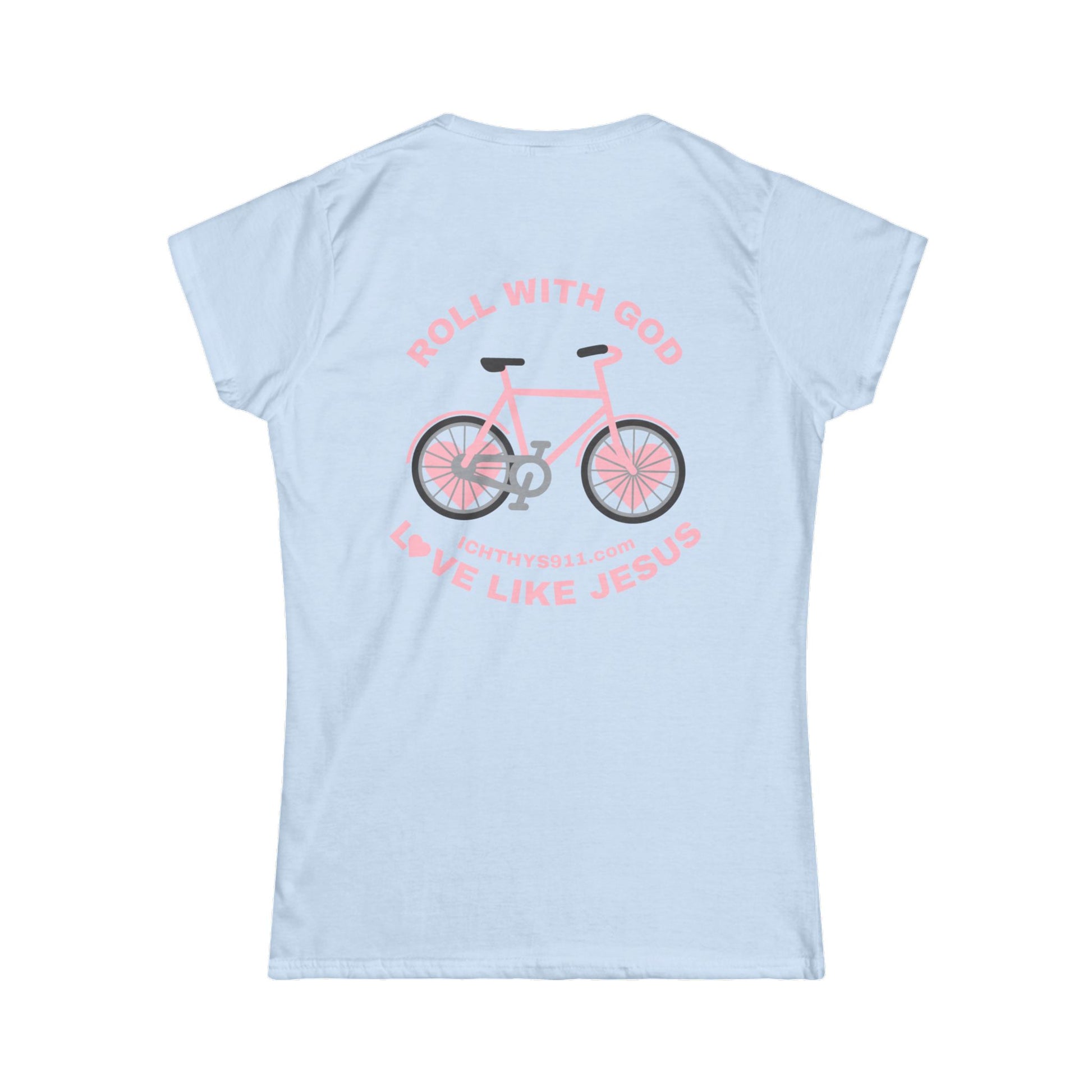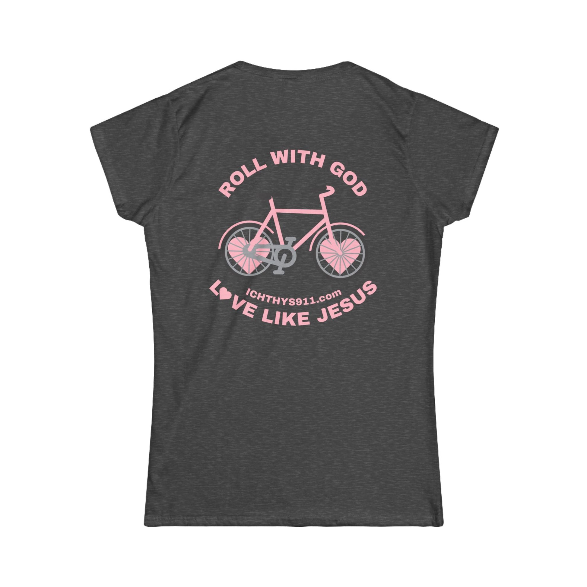 ICHTHYS 911 - "Roll With God Love Like Jesus" - Pink Font - Faith-Inspired Women's Tee - Summer Light T-Shirt - Wear Your Faith - Soft style Tee