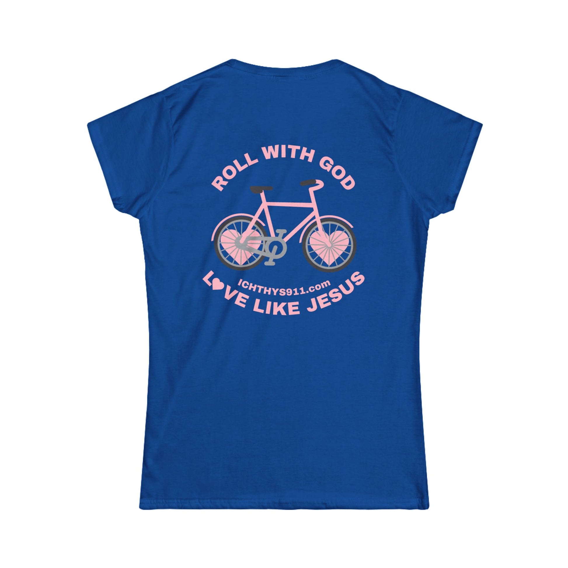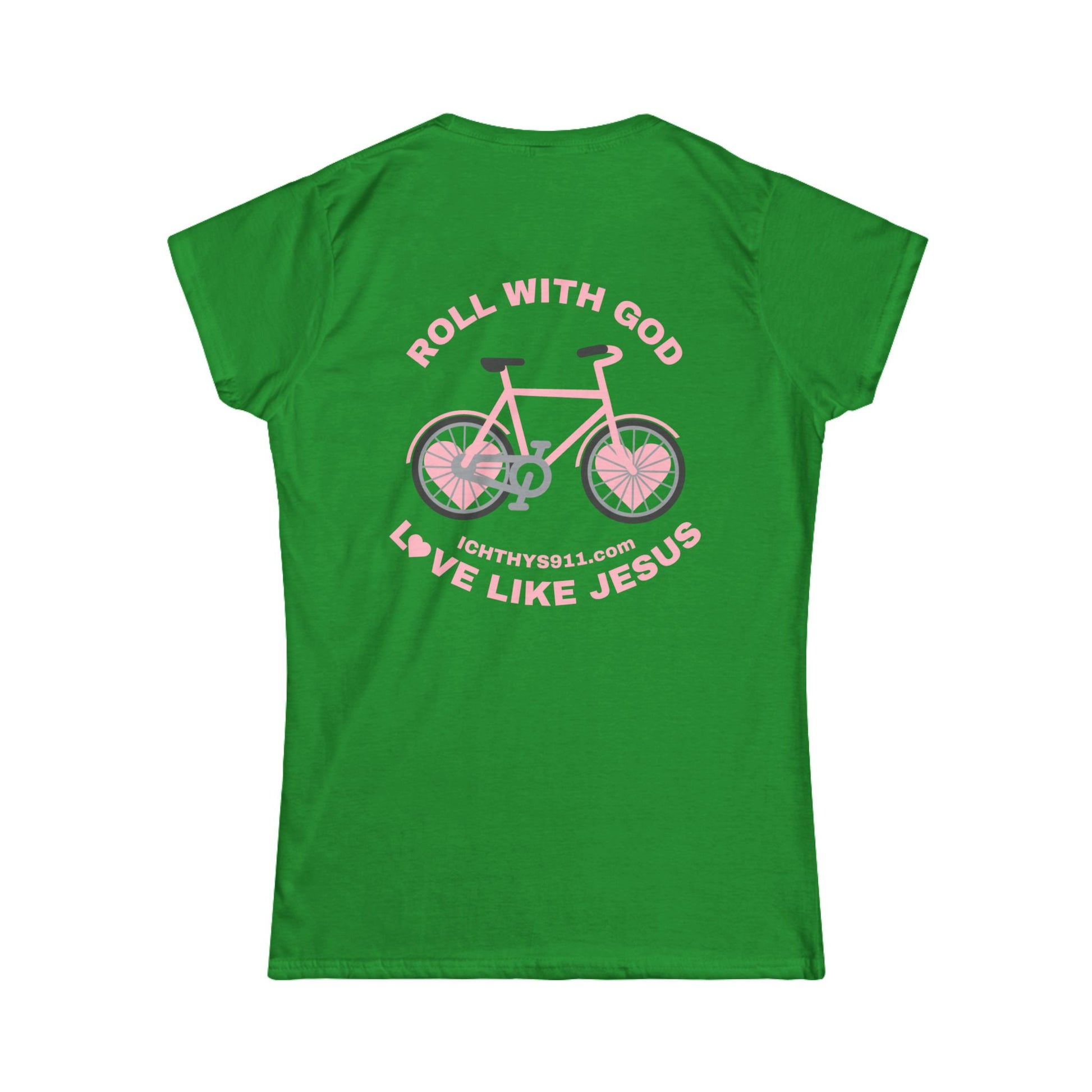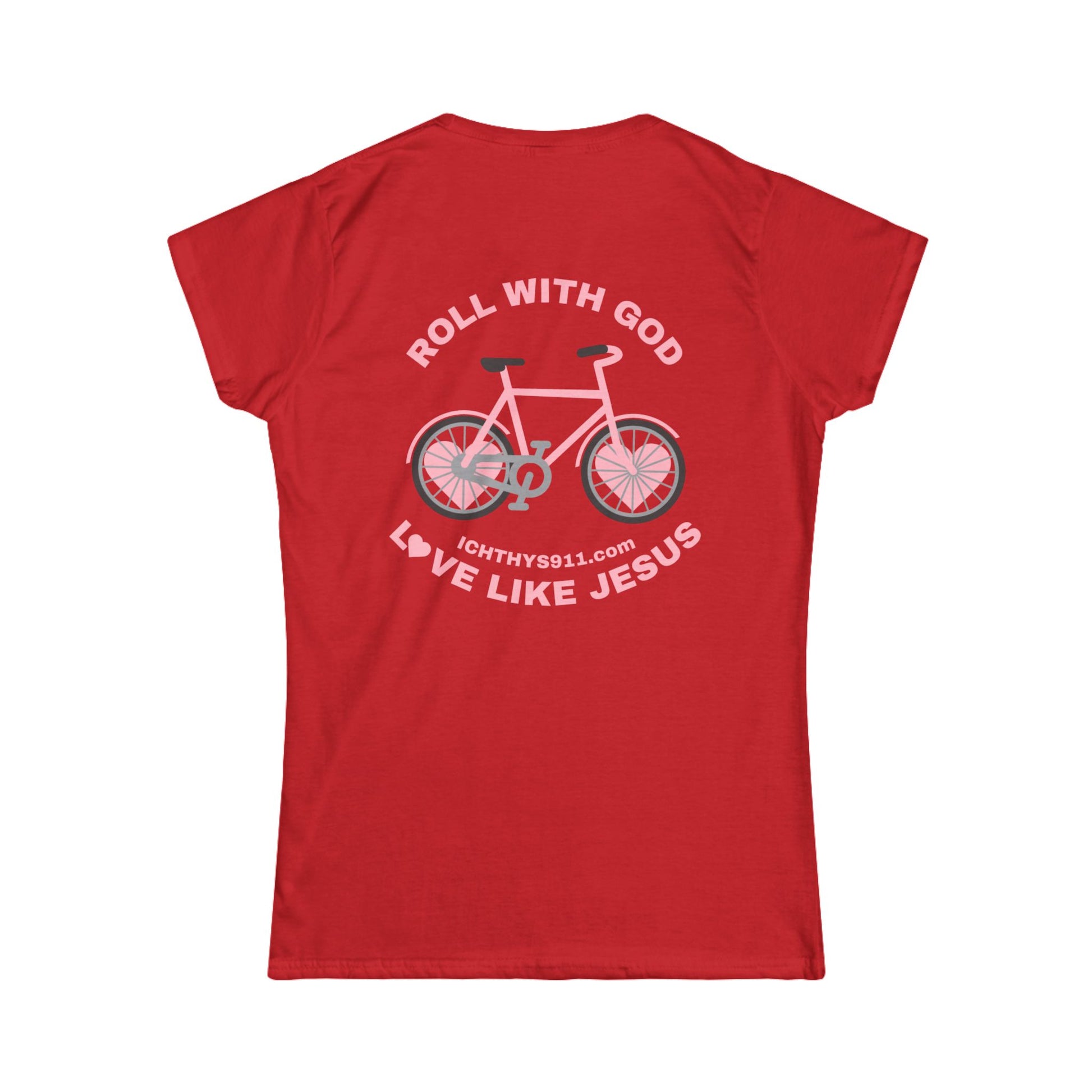 ICHTHYS 911 - "Roll With God Love Like Jesus" - Pink Font - Faith-Inspired Women's Tee - Summer Light T-Shirt - Wear Your Faith - Soft style Tee