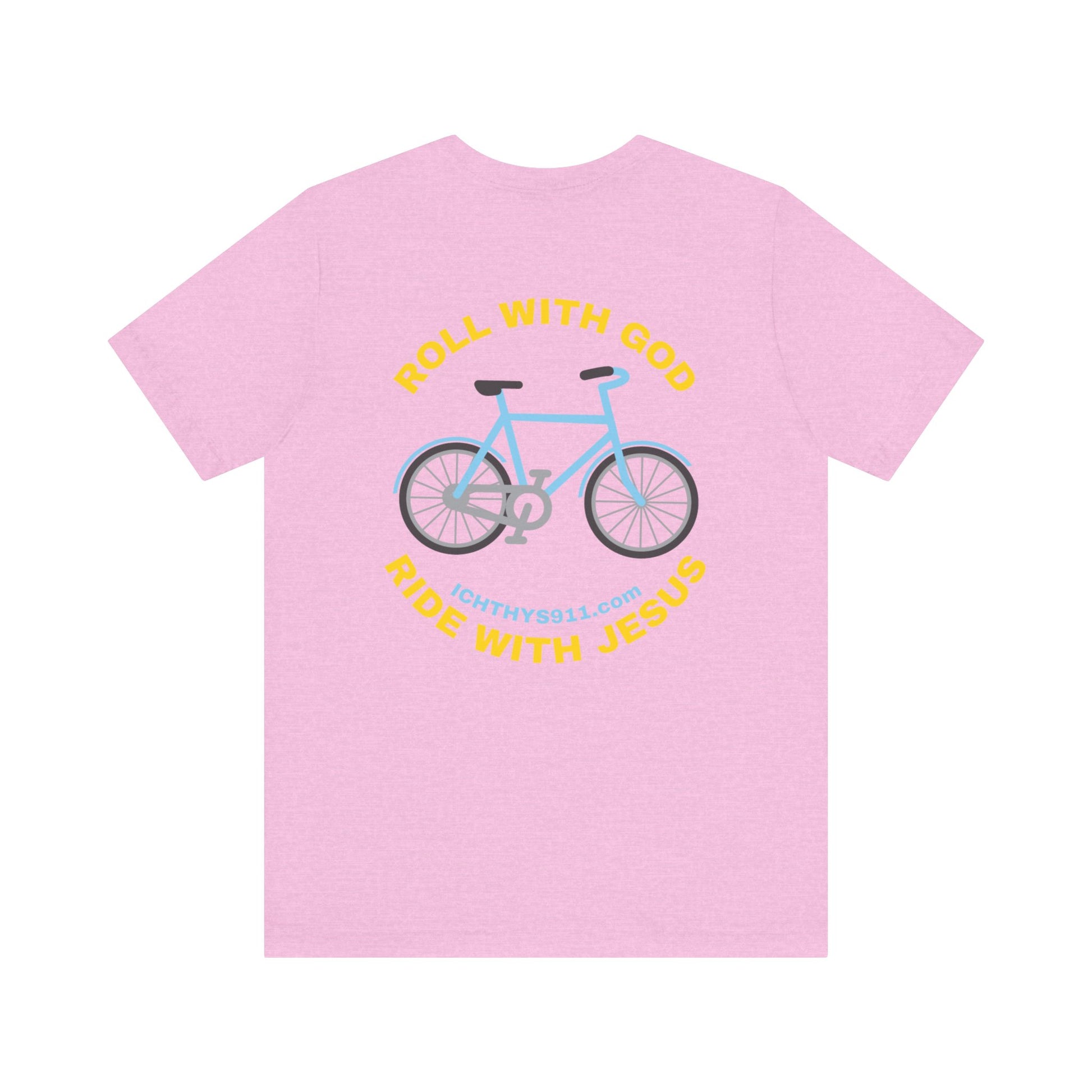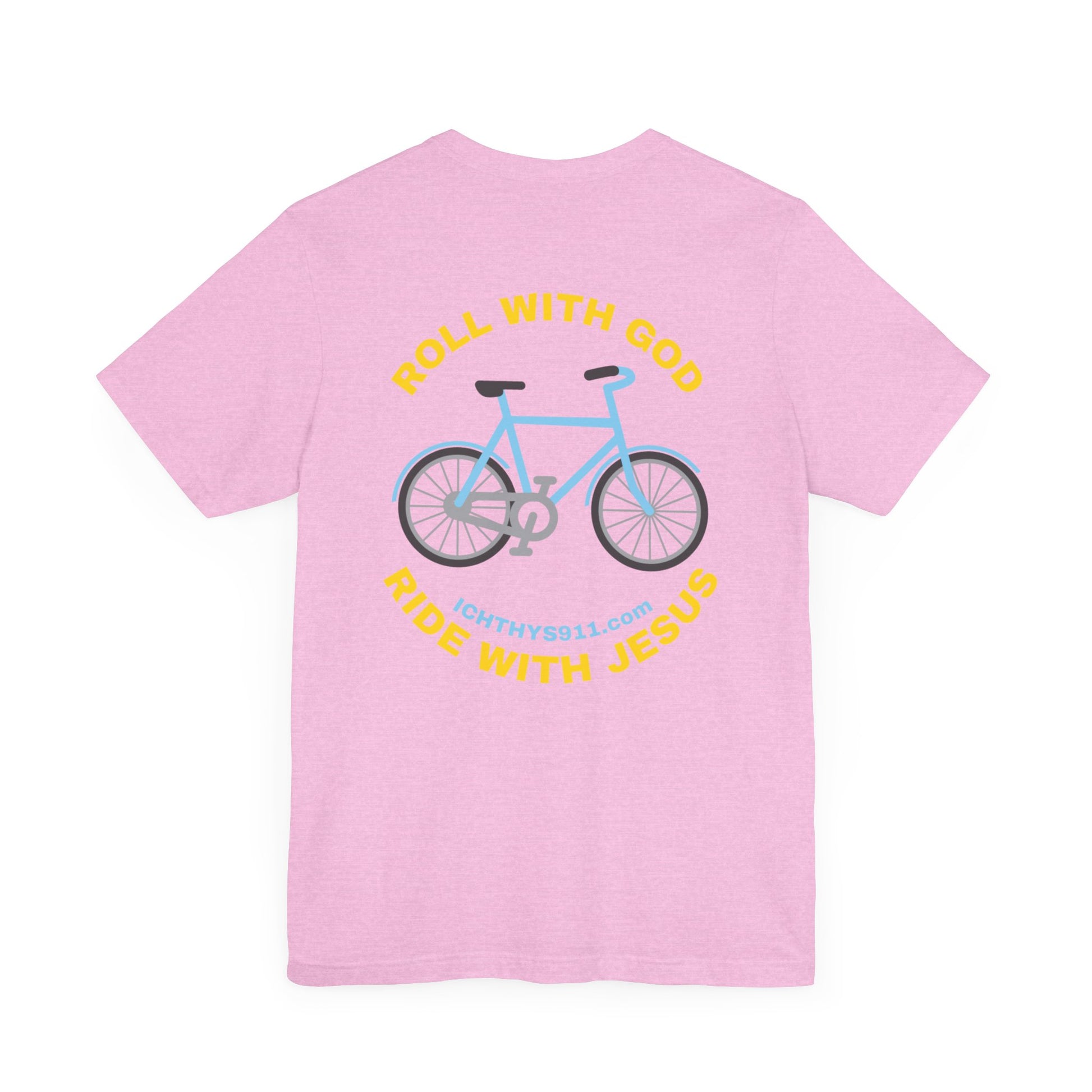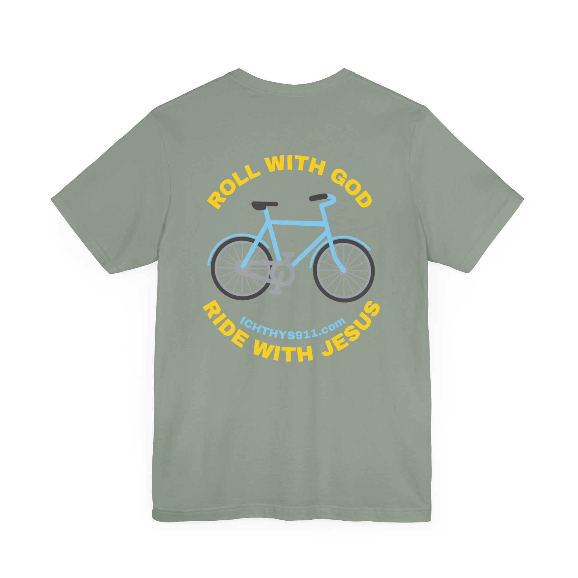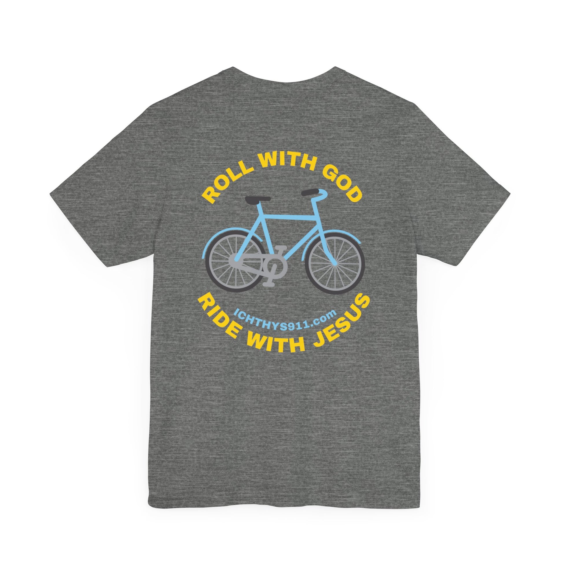 ICHTHYS 911 - "Roll With God Ride With Jesus" - Gold Font - Unisex T- Shirt - Lightweight 100% Cotton - Summer T - Arm Form Fitting - Men T- Shirt - Women T-Shirt - Christian T-Shirt
