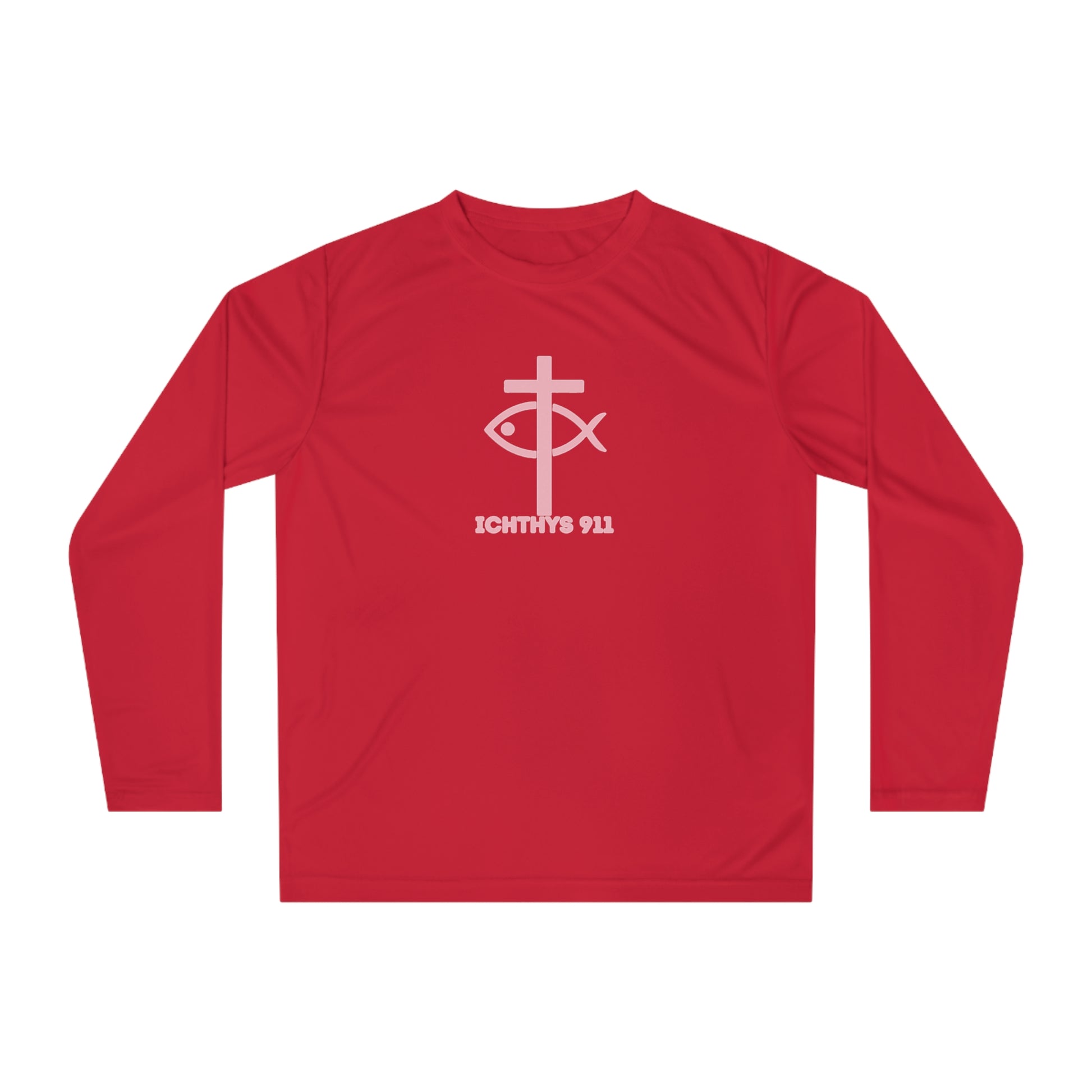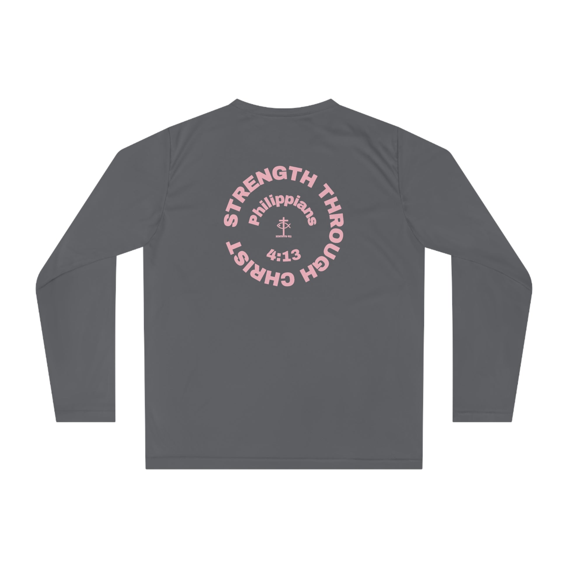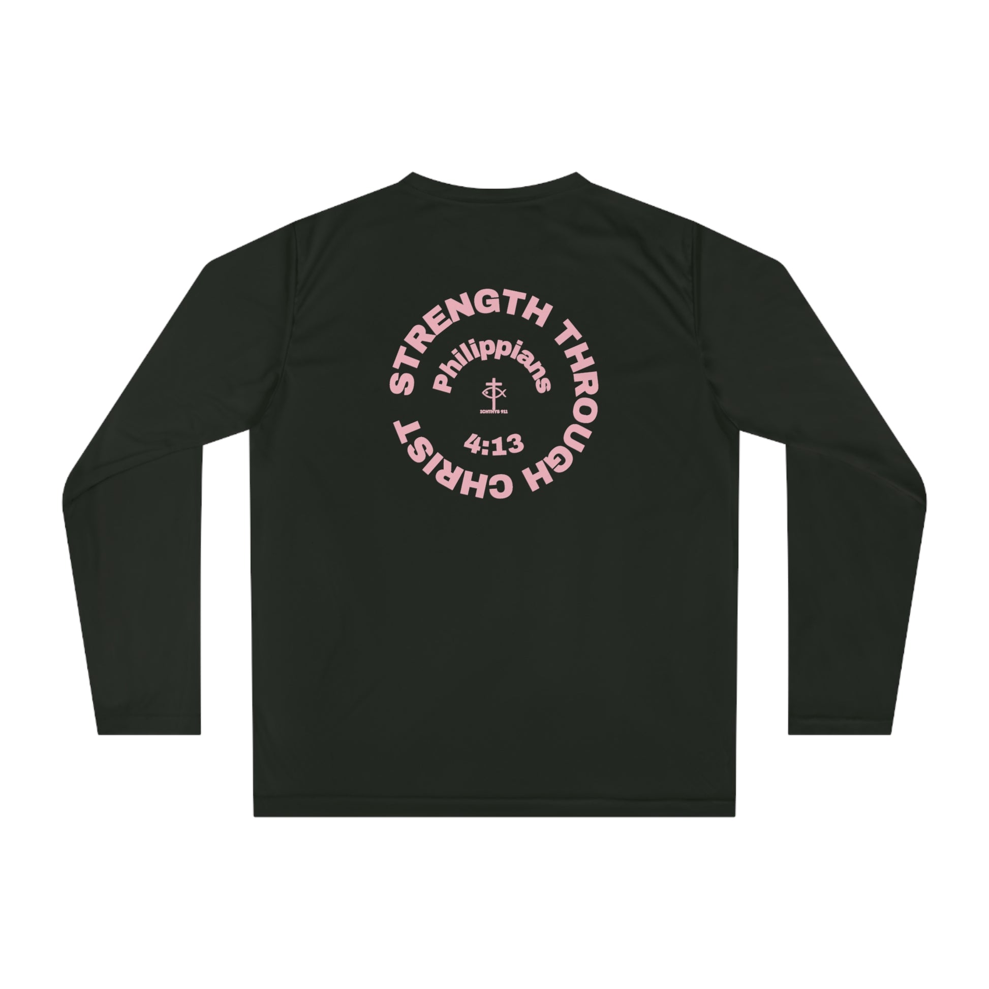 ICHTHYS 911 "Strength Through Christ Philippians 4:13" - Unisex Performance Long Sleeve Shirt - Men - Women - 100% Moisture-Wicking Poly - Christian Activewear