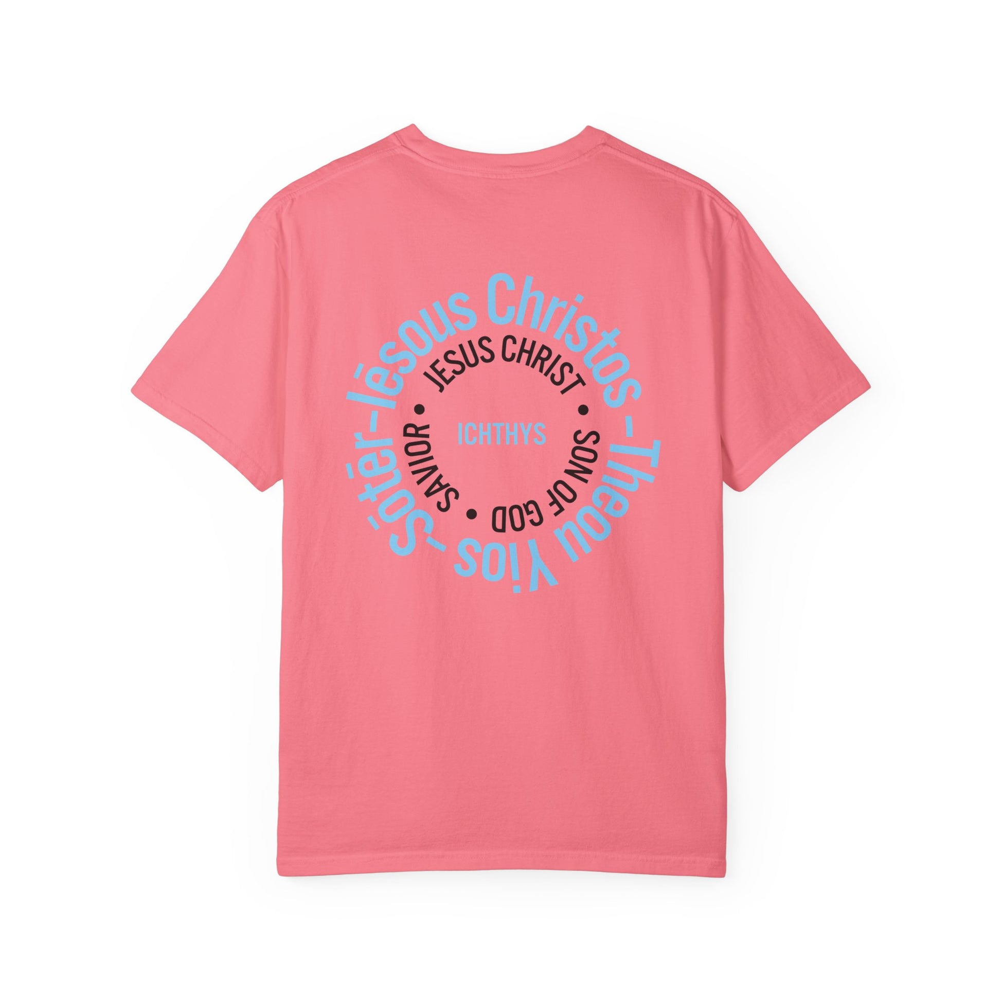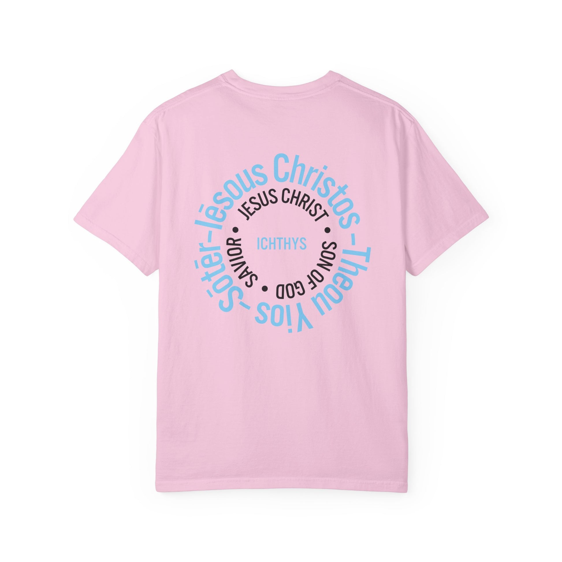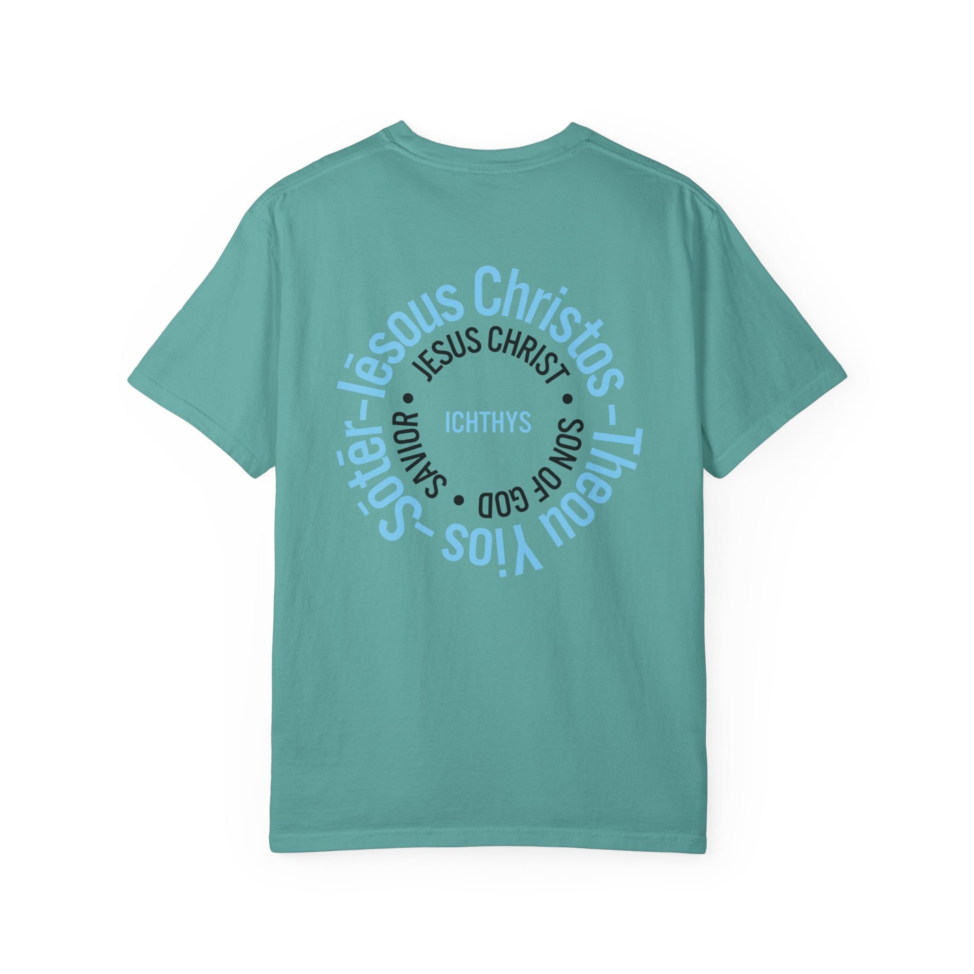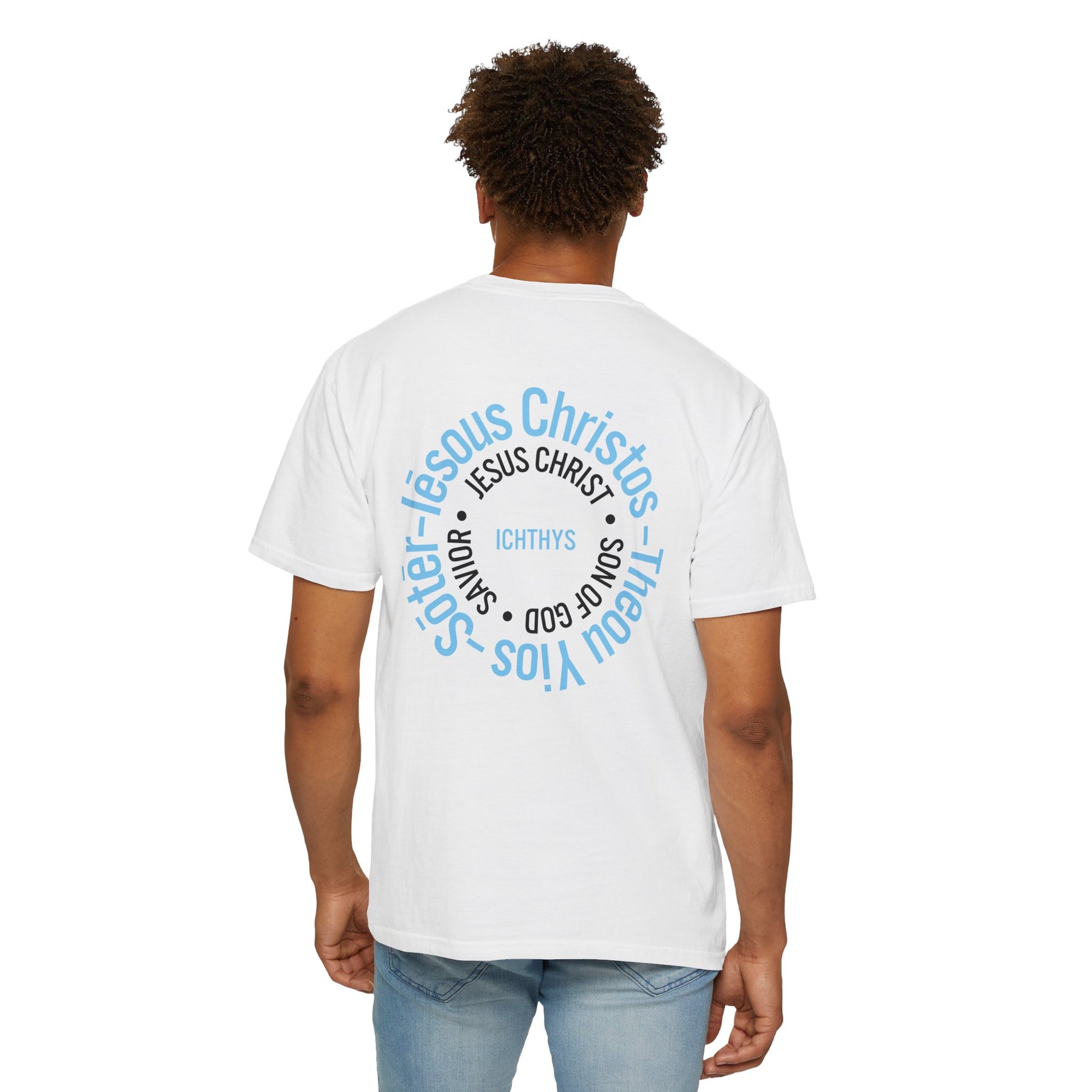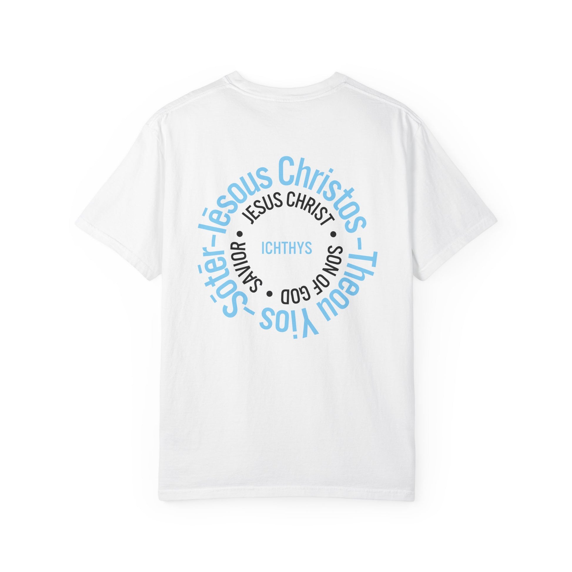 ICHTHYS 911 - Blue Font "Iēsous Christos, Theou Yios, Sōtēr" - Garment-Dyed - 100% US Cotton - Unisex T-Shirt - Men T-Shirt - Women T-Shirt - Christian Symbol - Greek - Faith Inspired -Christian Streetwear – Jesus Gym & Faith Fashion, Unisex Garment